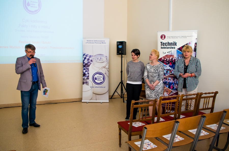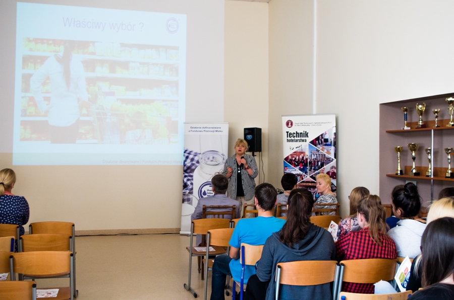 Reklama, a nasze wybory żywieniowePolska Izba Mleka uczciła Światowy Dzień Mleka także w Łomży. W ramach projektu "Cykl Konferencji: Fakty i mity o mleku" sfinansowanego z Funduszu Promocji Mleka przeprowadzono spotkanie, które było adresowane do grona osób kształcących się na kierunkach związanych z żywieniem człowieka w Zespole Szkół Technicznych i Ogólnokształcących Nr 4 w Łomży. Z ogromną uwagą i zainteresowaniem wysłuchaliśmy wykładu "Wpływ reklamy na nasze wybory żywieniowe" poprowadzonego przez panią dr n. med. Irenę Białokoz - Kalinowską. Uczestniczyli w nim uczniowie i grono nauczycielskie kierunków żywienia i usług gastronomicznych oraz hotelarstwa. Uczniowie będą mogli w przyszłości kształtować zdrowy styl życia.