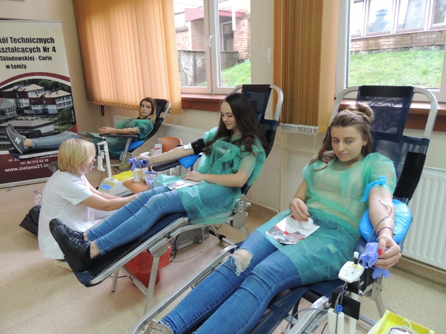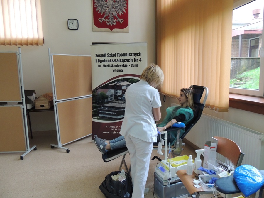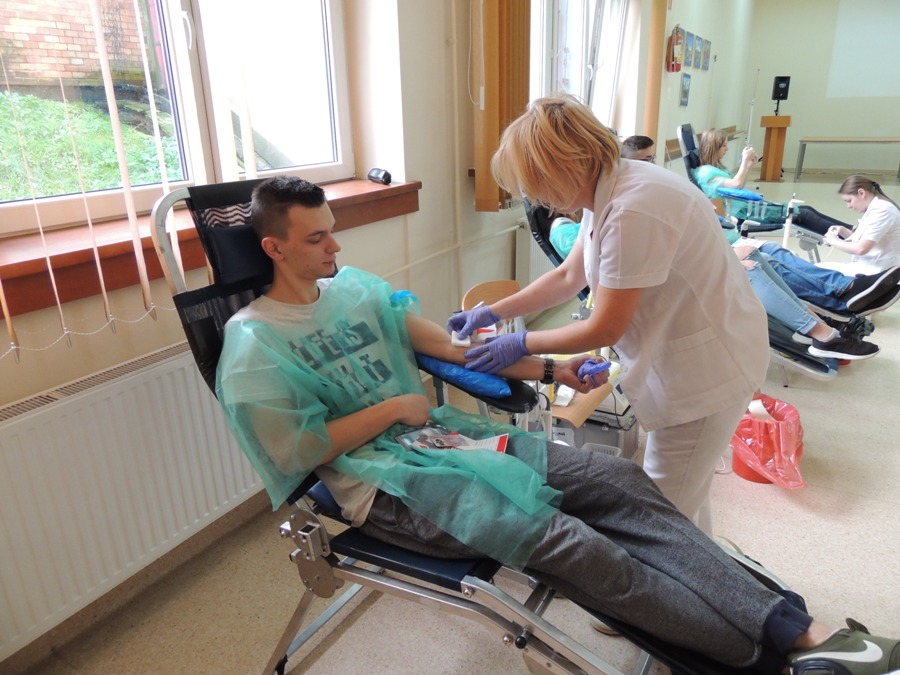 26 października 2017r. odbyła się w naszej szkole kolejna edycja honorowego oddawania krwi. Akcja ta wpisała się już na stałe w kalendarz szkolnych wydarzeń. Większość uczestników oddaje krew regularnie i już zapowiedziała udział w następnej edycji. Do honorowych krwiodawców dołączyła też p. Bogusława Romanowska, która swoją postawą zachęcała uczniów i nauczycieli do udziału w tej szlachetnej inicjatywie.