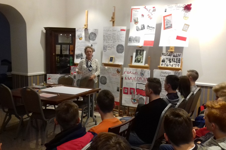 Uczniowie naszej szkoły z klasy 1a TB wzięli udział w w/w warsztatach w dn. 08.11. br. pod opieką p. W. Czupryńskiego i p. K. Dudy. Poniżej zdjęcia z tychże warsztatów. Po krótkim wprowadzeniu Czesława Rybickiego, znanego i cenionego historyka regionalisty, uczniowie obejrzeli „wystąpienie” wirtualnego Józefa Piłsudskiego, który opowiedział im o swojej historii wpisanej w losy Polski, Łomży oraz budynku zwanego Domkiem Pastora. Po „prelekcji” Marszałka uczniowie opracowywali plakaty nawiązującego do losów wybranych postaci ziemi łomżyńskiej. Planowany jest także udział klasy 1 AH w dn. 9.11.2017 r. w tychże warsztatach. Obok fotogaleria z tego patriotycznego eventu.