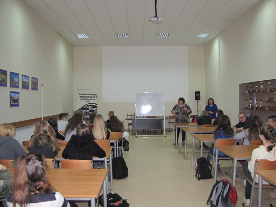 Udział uczniów w zajęciach profilaktycznych w WOPiTU22 listopada 2017 roku wszystkie klasy pierwsze IV Liceum Ogólnokształcącego i Technikum Nr 4 uczestniczyli w zajęciach profilaktycznych prowadzonych przez terapeutów Wojewódzkiego Ośrodka Profilaktyki i Terapii Uzależnień w Łomży.