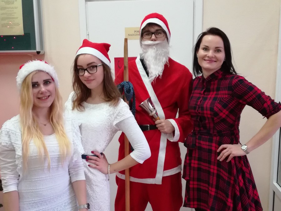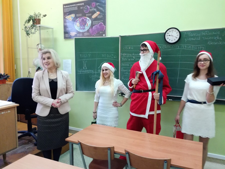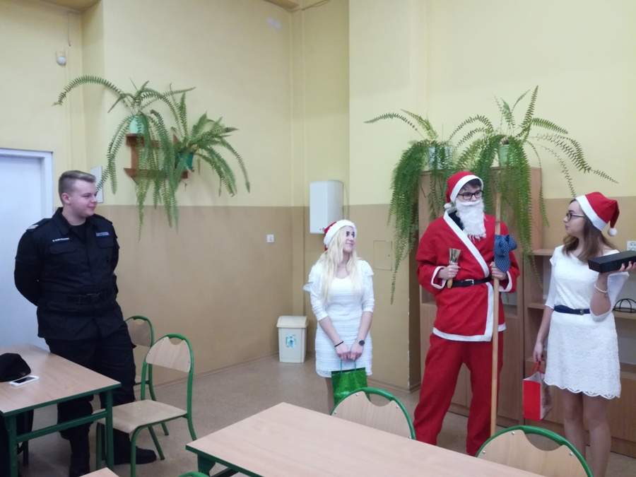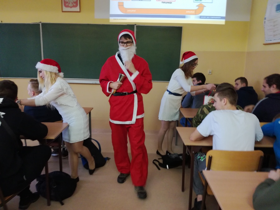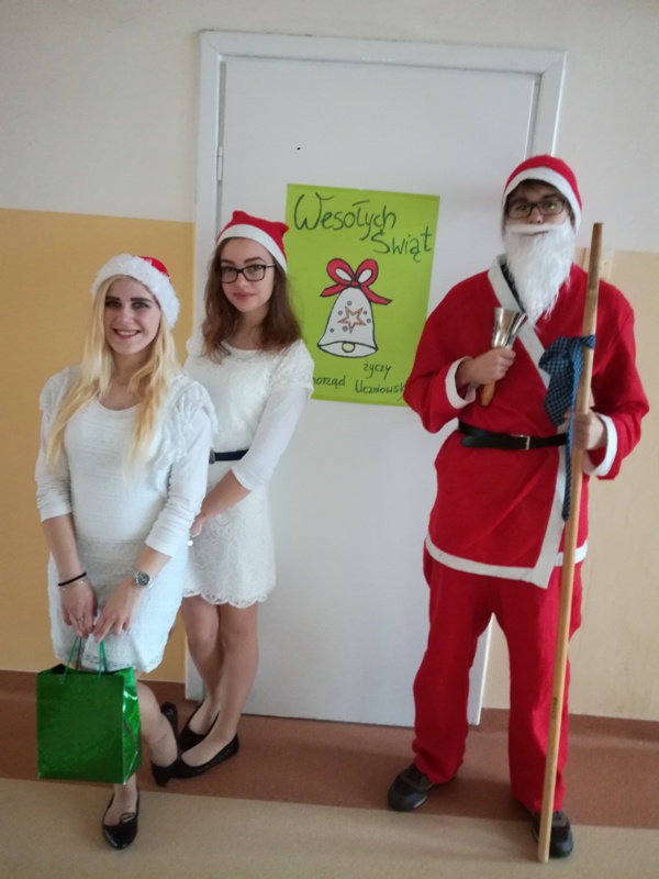 Wizytę Świętego Mikołaja przygotował Samorząd Uczniowski pod opieką p. A. Ulińskiej. W rolę Świętego Mikołaja oraz Śnieżynek wcielili się uczniowie klasy 3AH: Krystian Sienicki, Natalia Stomska oraz Justyna Karczewska. Samorząd Uczniowski udekorował też tradycyjną choinkę oraz przygotował świąteczne plakaty. W najbliższych dniach Koło Dekoracyjne działające przy bibliotece pod opieką p. B. Szymanowskiej rozwiesi też w szkole świateczne dekoracje.