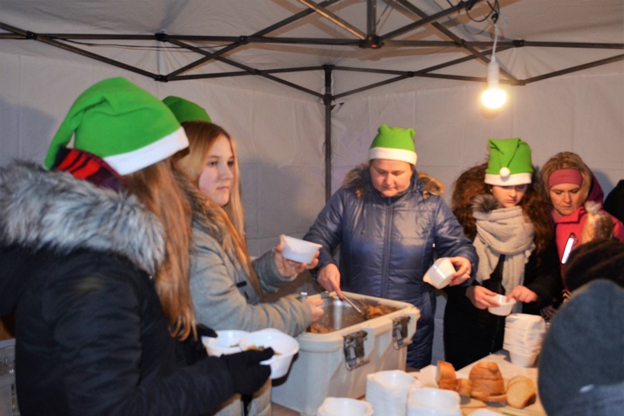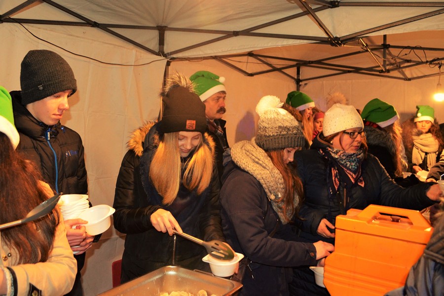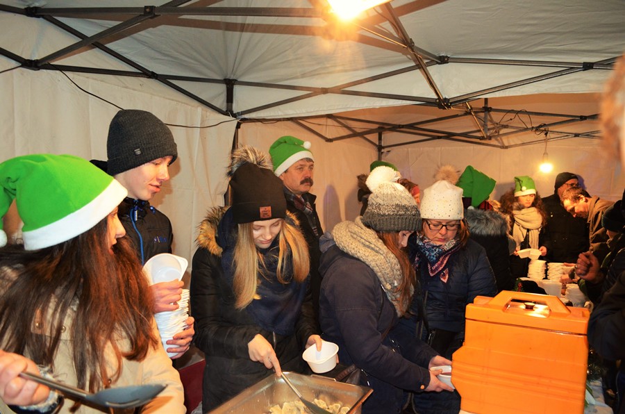 Łomżyńska Wieczerza Wigilijna 2017W dniu 17 XII 2017r. odbyła się Łomżyńska Wieczerza Wigilijna. Spotkanie rozpoczęło się przekazaniem Betlejemskiego Światła Pokoju - symbolu ciepła, miłości i nadziei, które przywieźli do Łomży harcerze. Życzenia mieszkańcom miasta złożyli: prezydent Łomży Mariusz Chrzanowski, Starosta łomżyńska Elżbieta Parzych, przewodniczący Rady Miejskiej Łomży Wiesław Grzymała ,a także biskup łomżyński Janusz Stepnowski, któremu z okazji szóstej rocznicy posługi w Łomży kwiaty wręczyła wiceprezydent Agnieszka Muzyk. Po życzeniach i przełamaniu się opłatkiem Łomżyniacy mogli skosztować potraw wigilijnych m.in kapusty z grzybami oraz barszczu z uszkami w przygotowaniu, których pomagali uczniowie naszej szkoły z klas: 1TŻiUG , 3TŻiUG, 1AH oraz nauczyciele - Ewa Bogulas, Edyta Trzaska, Katarzyna Więsak, Magdalena Kuczewska i Hanna Bukowska.