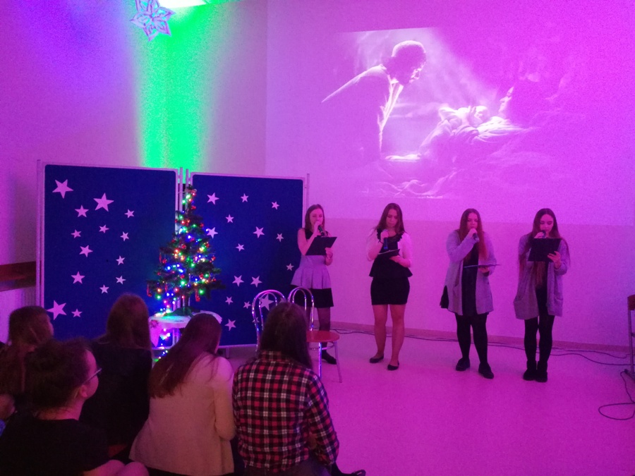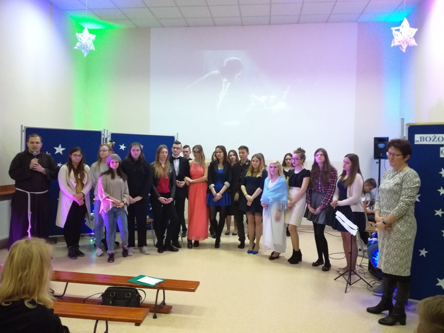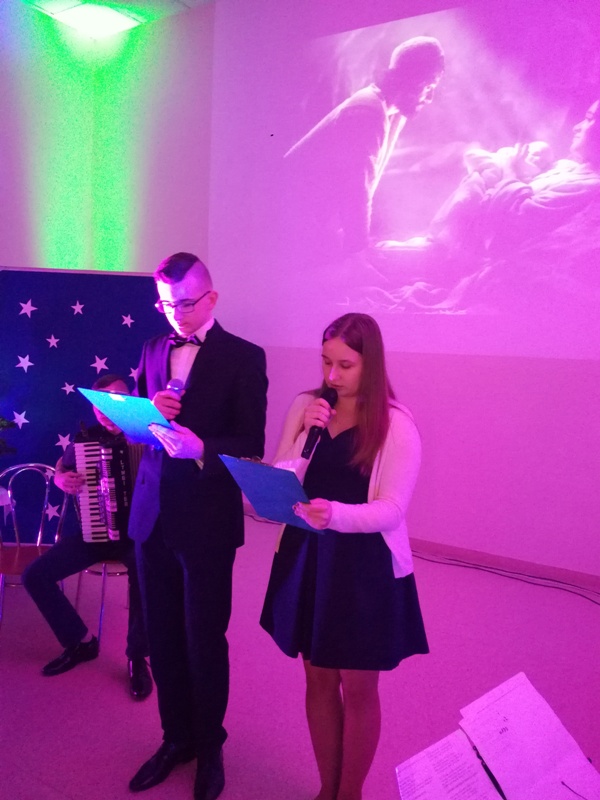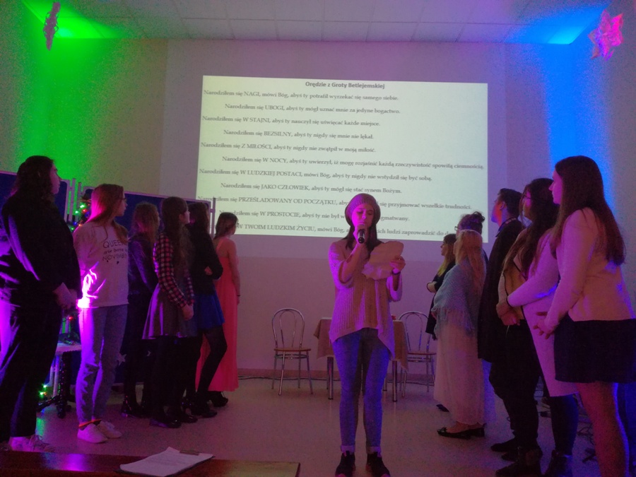W dniu 21 grudnia 2017 odbyły się w naszej szkole jasełka bożonarodzeniowe. Przedstawienie miało charakter scenek przedstawiających rożne postawy ludzi wobec przychodzącego Jezusa, połączonych z wykonaniem kolęd i pastorałek. Liczne grono młodzieży z różnych klas szkoły, pod kierownictwem siostry Ewy Biernackiej i brata Mariusza Dunaja, bardzo aktywnie zaangażowało się w tę inicjatywę, przypominając nam wszystkim słowa narodowego wieszcza „Chrystus narodził się w Betlejemskim żłobie, lecz biada Ci człowiecze jeśli nie narodził się w Tobie.”