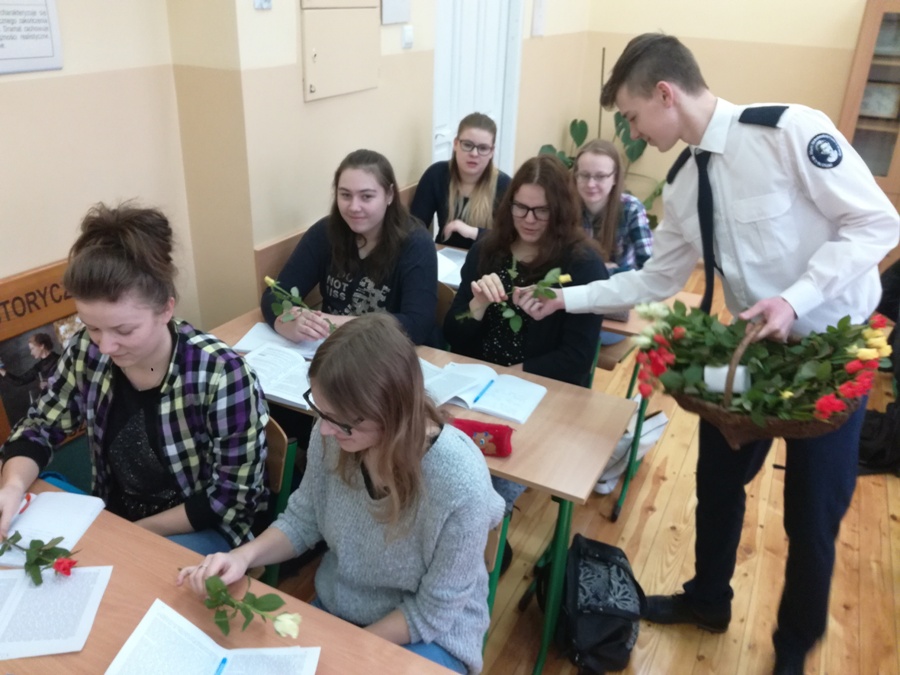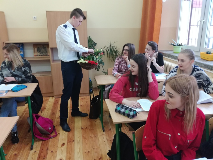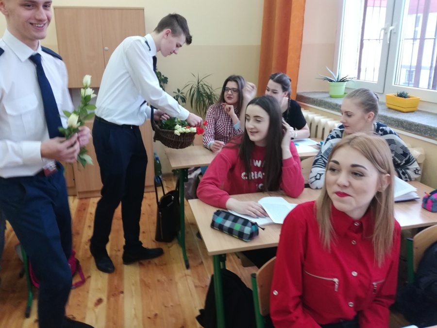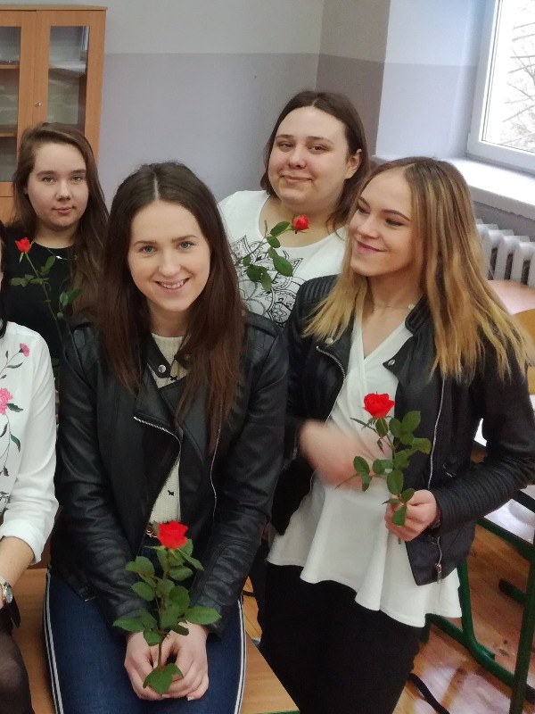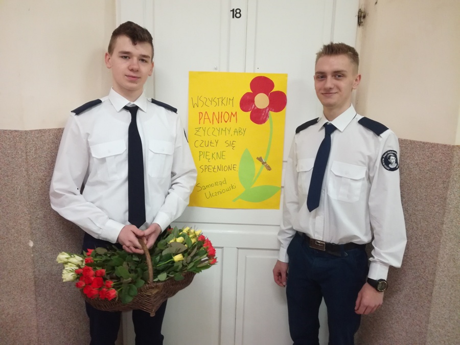 8 marca Panie obchodzą swoje święto, o czym nie zapomniał Samorząd Uczniowski. Tego dnia, Dominik Michalski i Mariusz Jankowski z klasy 2AH odwiedzili wszystkie klasy podczas lekcji, składając Paniom życzenia i wręczając każdej z nich różę. Nad akcją czuwał Opiekun Samorządu Uczniowskiego p. Anna Ulińska.