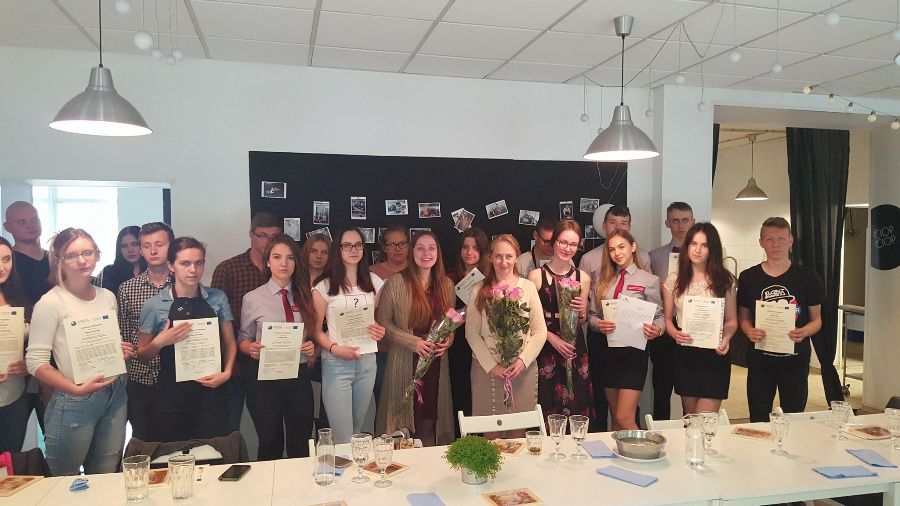 Na zakończenie stażu, podczas uroczystego obiadu, wszyscy uczestnicy projektu otrzymali od dyrektora Education, Research & Consultancy Center – pani Julji Seseiki certyfikaty potwierdzające realizację stażu oraz pamiątki z symbolem Kłajpedy. Spośród wszystkich stażystów aż siedmioro otrzymało rekomendację dla przyszłych pracodawców. W branży budowlanej wyróżnili się: Kacper Potaś, Michał Wybraniak oraz Dawid Łagodziński. W branży hotelarskiej na szczególną uwagę zasłużyły Karolina Piaścik oraz Angelika Sadłowska. W branży żywieniowej docenieni zostali Gabriela Romankiewicz oraz Norbert Sobociński.