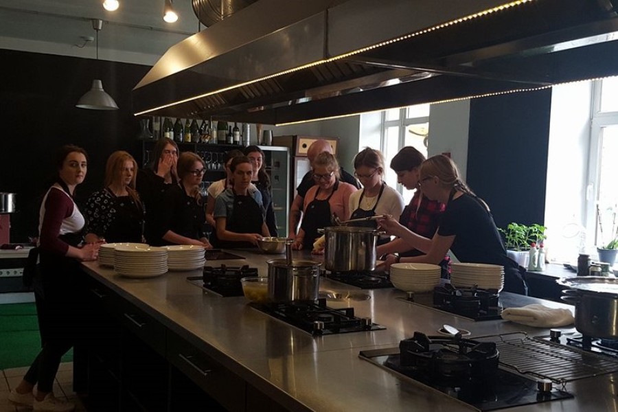 Dopełnieniem staży zawodowych były wycieczki hotelarzy i żywieniowców do firm branżowych - Hotelu Amberton **** oraz fabryki cukierków „Roshen” w Kłajpedzie. Uczestnicy zapoznali się z procesem produkcji cukierków oraz mieli możliwość samodzielnego sporządzenia lizaków z masy karmelowej. Ponadto obie grupy udały się do największej i najbardziej nowoczesnej szkoły turystyczno-gastronomicznej w mieście. Szkoła posiada swoje restauracje, kawiarnie i cukiernie, w których sprzedawane są wyroby własnej produkcji klientom z zewnątrz.