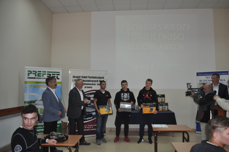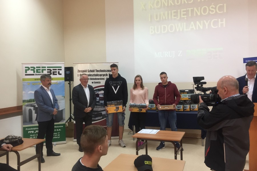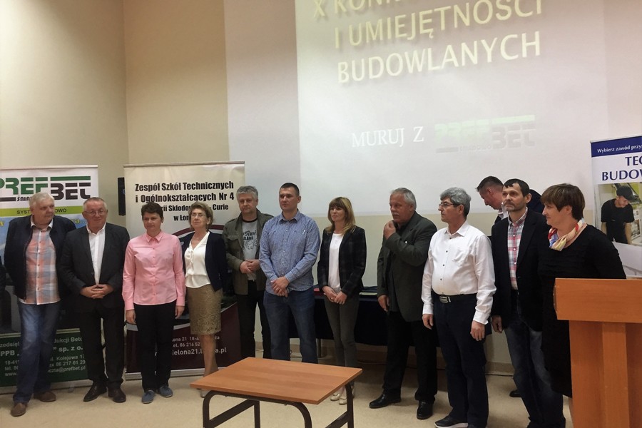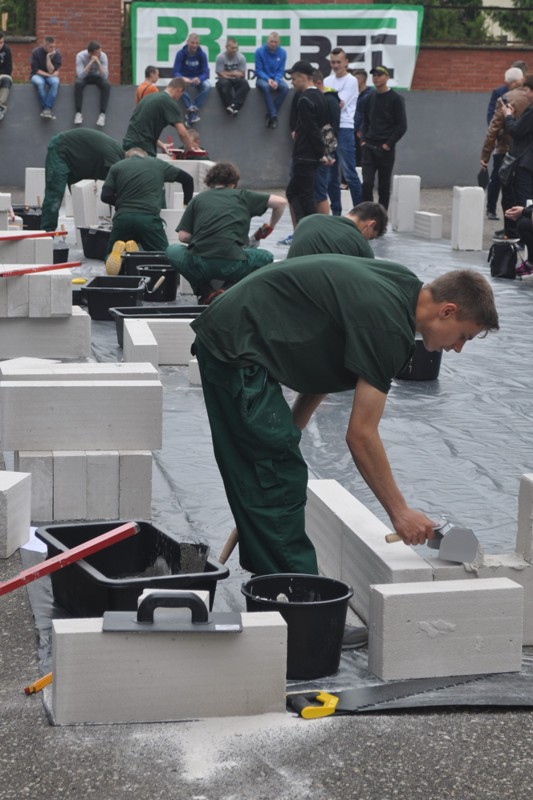 17 maja 2018 roku w naszej szkole odbyła się X edycja konkursu budowlanego „Muruj z Prefbetem”. W zmaganiach wzięli udział uczniowie z 7 zaprzyjaźnionych szkół. Celem konkursu była integracja szkół budowlanych z regionu oraz promocja technologii murowania na klej z bloczków gazobetonowych produkowanych przez sponsora konkursu firmę PREFBET – ŚNIADOWO. Była to doskonała okazja do spotkania się i wymiany doświadczeń pomiędzy nauczycielami zawodu i uczniami ze szkół o profilu budowlanym.