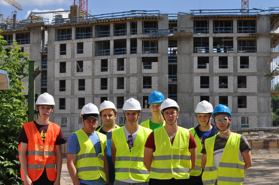 24 maja uczniowie technikum budownictwa odbyli wycieczkę na budowy prowadzone przez firmę ERBUD S.A. Jedną z nich było Centrum Handlowo-Usługowo-Rozrywkowe, a drugą Port Żerań - zespół budynków wielorodzinnych. Wycieczka miała charakter techniczno-szkoleniowy. Jej celem było zdobycie cennego doświadczenia, kontaktów zawodowych oraz integracja. Podczas wycieczki na powyższych budowach zostały poruszone tematy dotyczące min.: organizacji i technologii wykonania robót, rozwiązań konstrukcyjnych, zastosowanych materiałów oraz przepisów BHP.