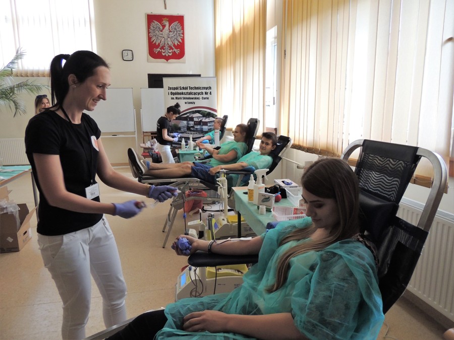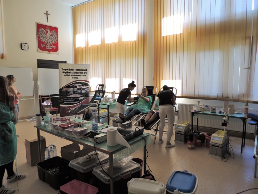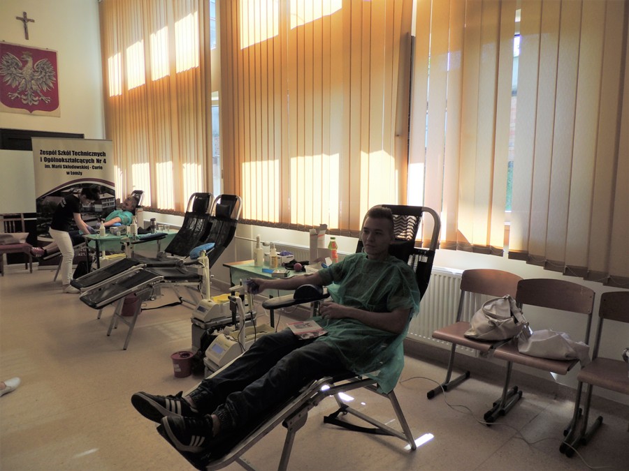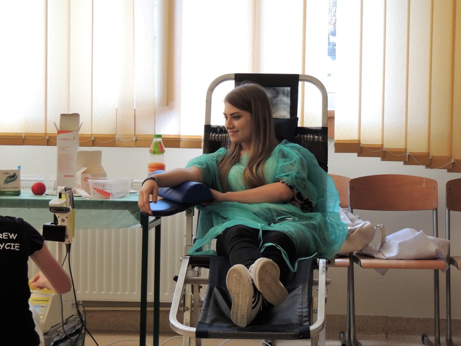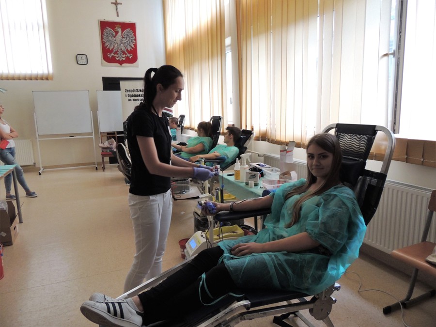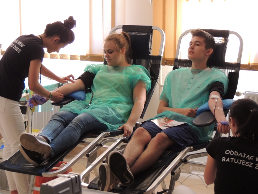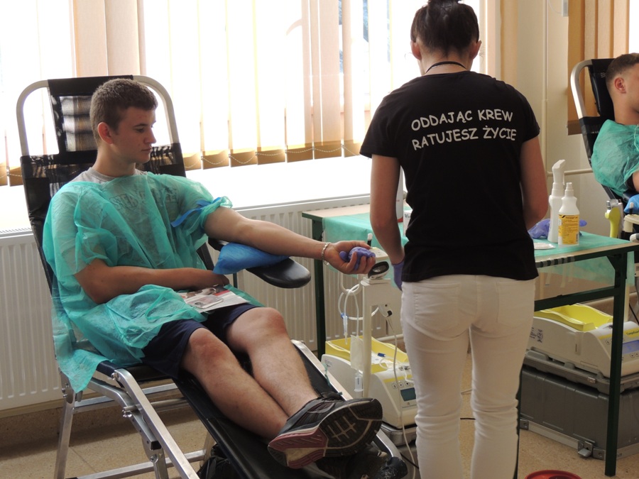 24 maja 2018r. odbyła się w naszej szkole kolejna edycja honorowego oddawania krwi. Jak zwykle honorowi dawcy nie zawiedli i oddali to co najcenniejsze aby uratować komuś zdrowie a nawet życie. Zbliżają się wakacje i zaczyna się sezon urlopowy, podczas którego zapotrzebowanie na krew jest większe przy jednoczesnej mniejszej podaży oddawanej krwi. Dlatego szczególnie cieszy tak duże zainteresowanie honorowym krwiodawstwem wśród uczniów. W akcji wzięli też udział nauczyciele, oprócz p. Bogusławy Romanowskiej i p. Sylwii Kołakowskiej krew oddał p. Rafał Kisiel. Honorowe krwiodawstwo wpisało się już na stałe w kalendarz szkolnych wydarzeń i większość uczniów oddaje krew regularnie.