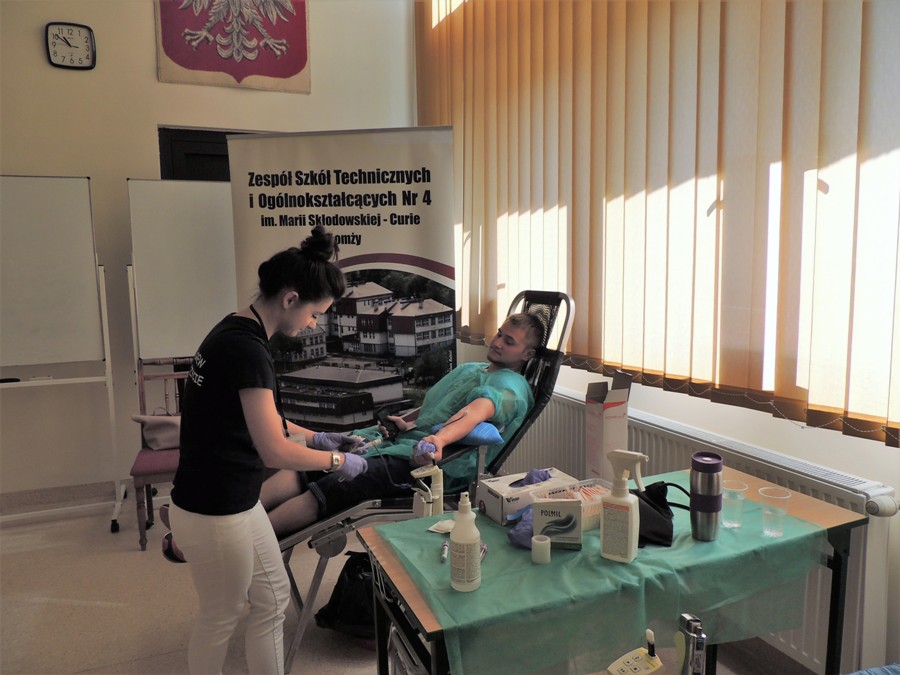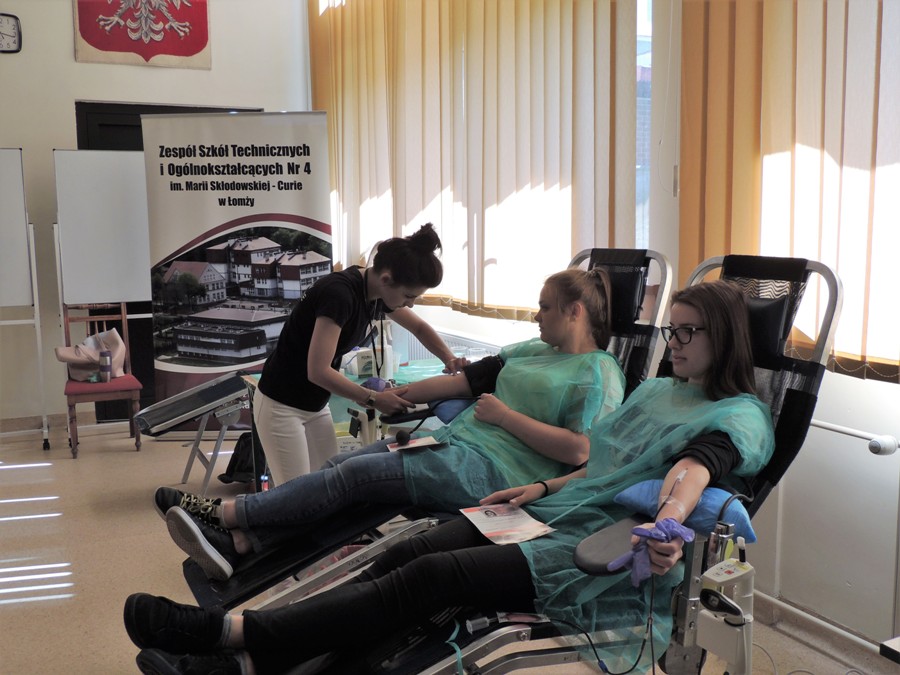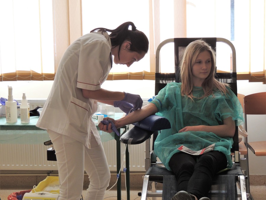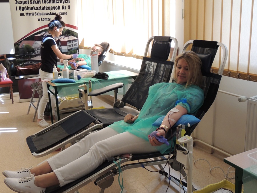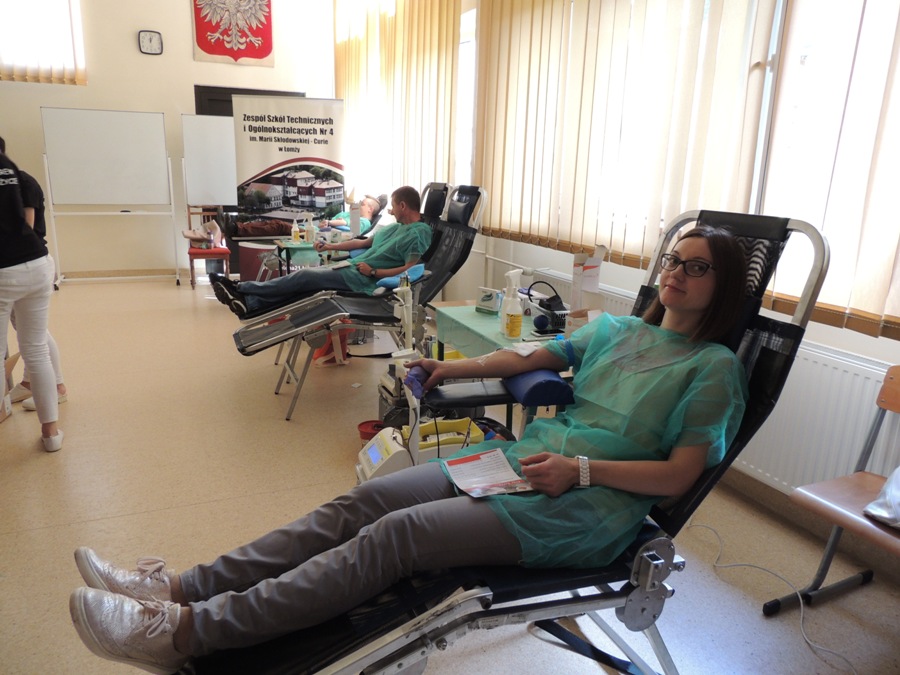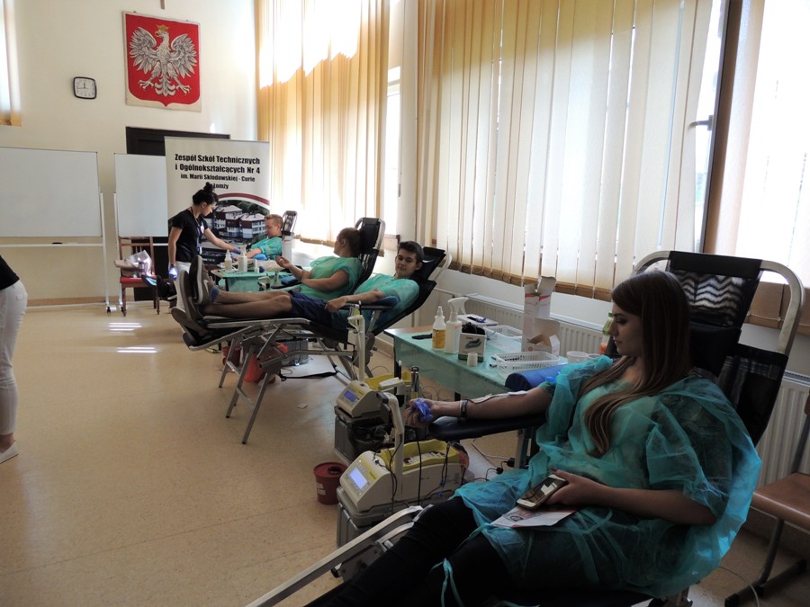 24 maja 2018r. odbyła się w naszej szkole kolejna edycja honorowego oddawania krwi. Jak zwykle honorowi dawcy nie zawiedli i oddali to co najcenniejsze aby uratować komuś zdrowie a nawet życie. Zbliżają się wakacje i zaczyna się sezon urlopowy, podczas którego zapotrzebowanie na krew jest większe przy jednoczesnej mniejszej podaży oddawanej krwi. Dlatego szczególnie cieszy tak duże zainteresowanie honorowym krwiodawstwem wśród uczniów. W akcji wzięli też udział nauczyciele, oprócz p. Bogusławy Romanowskiej i p. Sylwii Kołakowskiej krew oddał p. Rafał Kisiel. Honorowe krwiodawstwo wpisało się już na stałe w kalendarz szkolnych wydarzeń i większość uczniów oddaje krew regularnie.