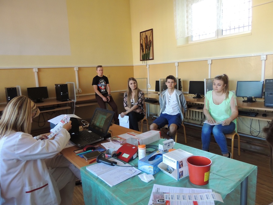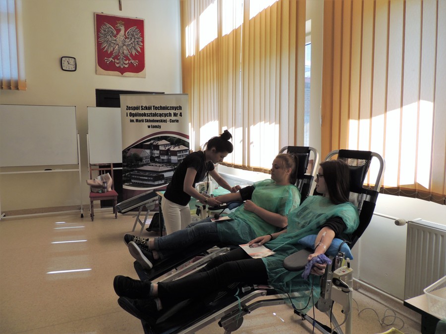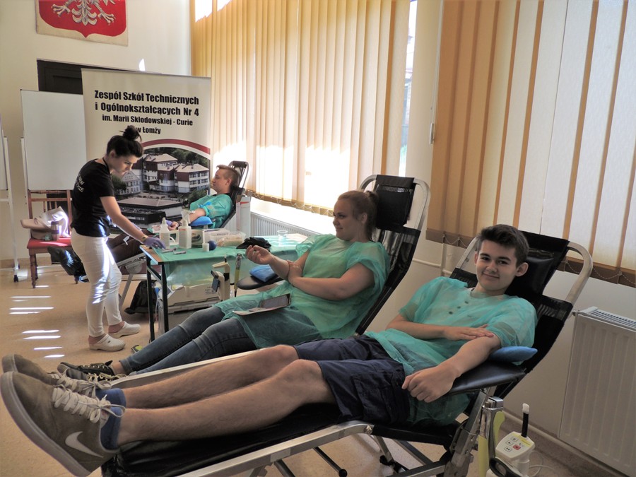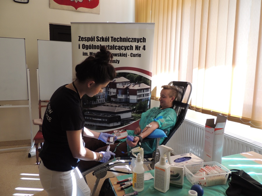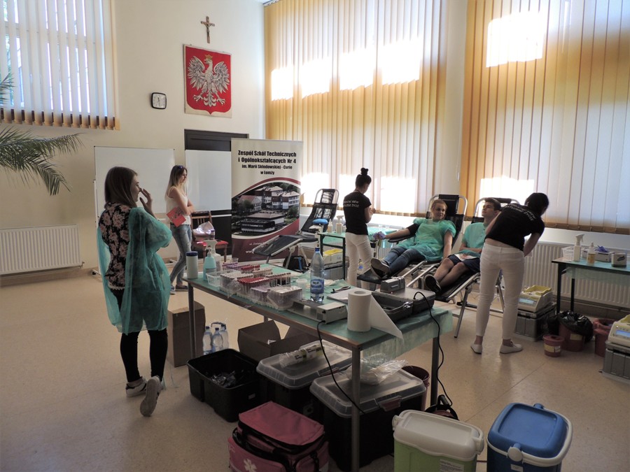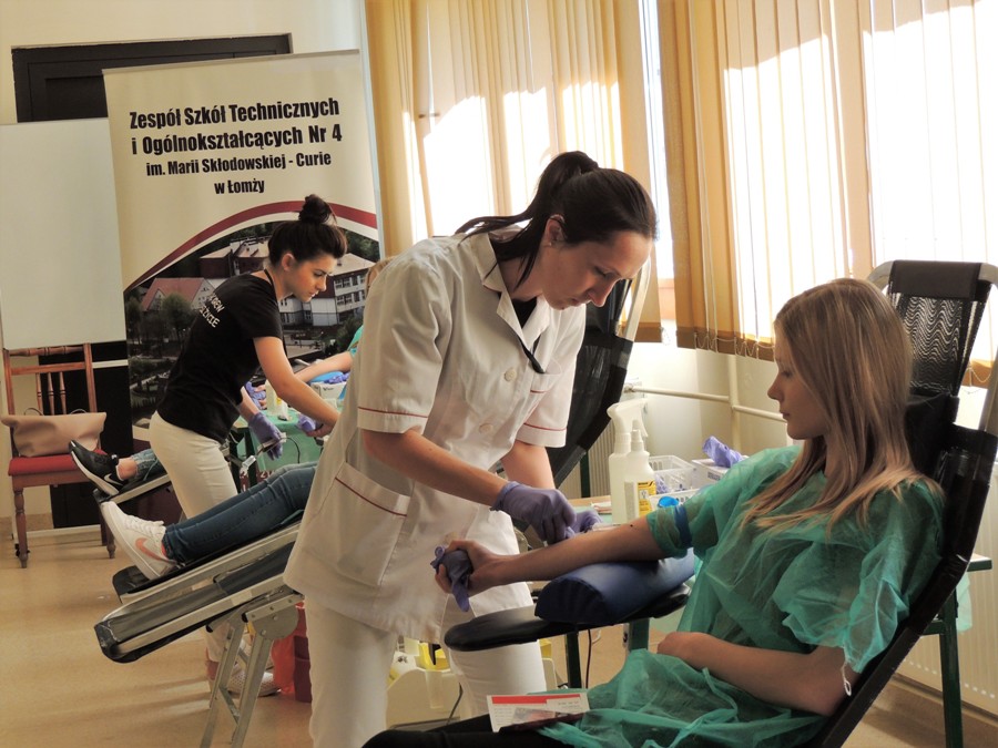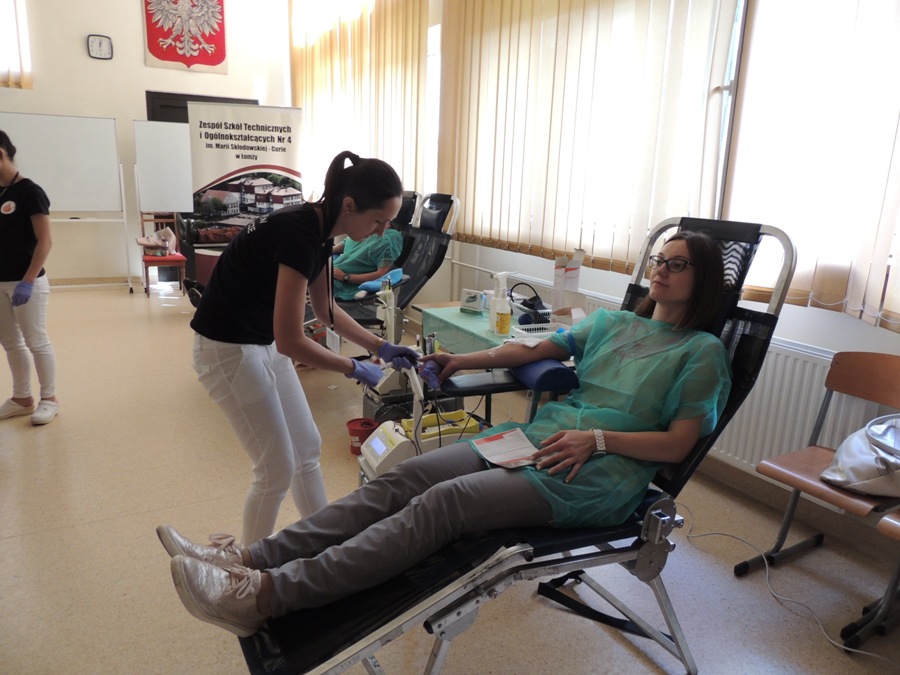 24 maja 2018r. odbyła się w naszej szkole kolejna edycja honorowego oddawania krwi. Jak zwykle honorowi dawcy nie zawiedli i oddali to co najcenniejsze aby uratować komuś zdrowie a nawet życie. Zbliżają się wakacje i zaczyna się sezon urlopowy, podczas którego zapotrzebowanie na krew jest większe przy jednoczesnej mniejszej podaży oddawanej krwi. Dlatego szczególnie cieszy tak duże zainteresowanie honorowym krwiodawstwem wśród uczniów. W akcji wzięli też udział nauczyciele, oprócz p. Bogusławy Romanowskiej i p. Sylwii Kołakowskiej krew oddał p. Rafał Kisiel. Honorowe krwiodawstwo wpisało się już na stałe w kalendarz szkolnych wydarzeń i większość uczniów oddaje krew regularnie.