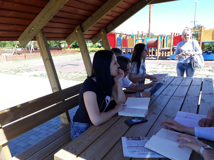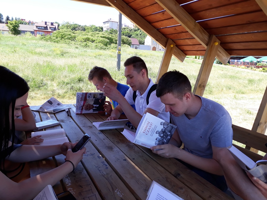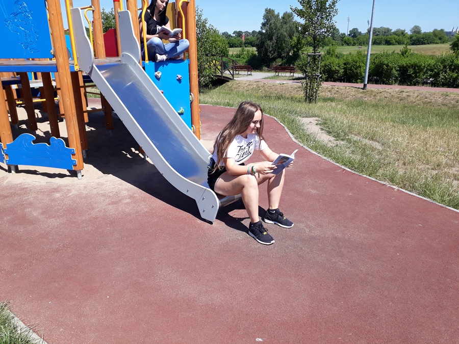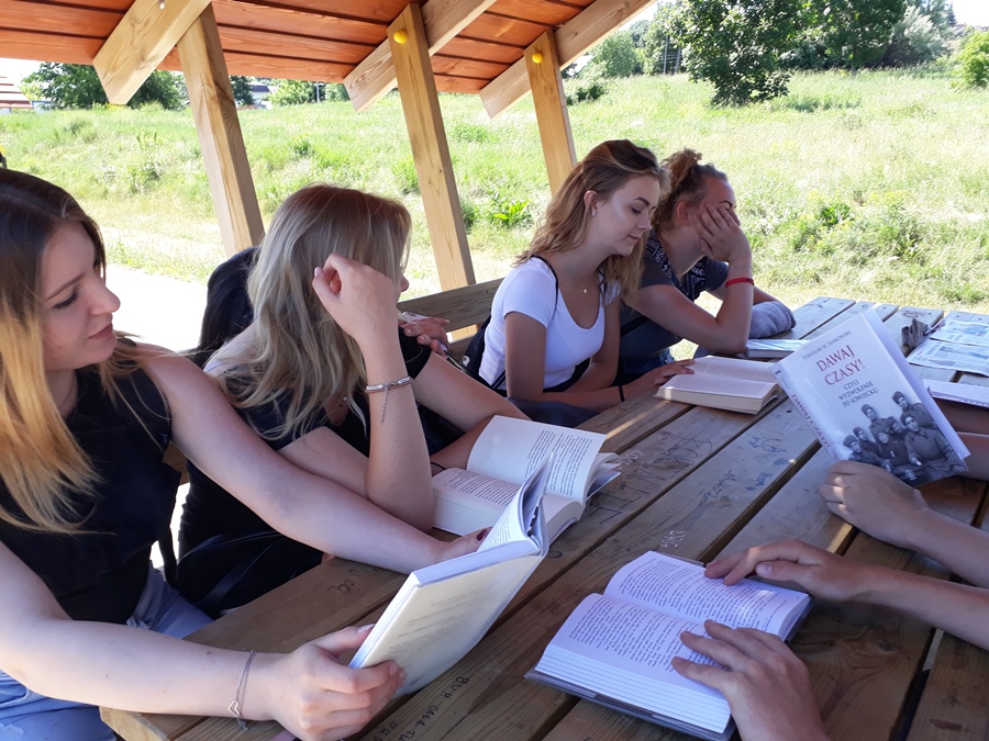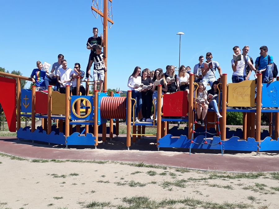 Dnia 8 czerwca 2018 r. uczniowie naszej szkoły wraz z nauczycielami wzięli aktywny udział w ogólnopolskiej akcji „Jak nie czytam, jak czytam”. Spotkanie z książką miało miejsce w piękny, ciepły dzień na bulwarach nad Narwią w Łomży. Uczestnicy zabrali ze sobą ulubione książki. Na łonie przyrody w przyjaznej, miłej atmosferze wszyscy pogrążyli się w lekturze. Dla niektórych czytane teksty stały się inspiracją do wyrażenia swoich emocji poprzez taniec, gimnastykę, mimikę i gestykulację. Głośne czytanie wybranych dialogów pobudziło kreatywność plastyczną kilku naszych uczniów, którzy mając do dyspozycji różne przybory piśmiennicze rysowali bohaterów i wydarzenia z czytanych książek. Wcześniej w naszej szkole promowaliśmy głośne czytanie fragmentów wybranych książek poprzez szkolny radiowęzeł. Ta akcja czytelnicza była czymś nowym. Spotkała się z dużym zainteresowaniem naszej młodzieży. Tego dnia uczniowie i nauczyciele wychodząc z książką poza mury szkoły czytali swoje ulubione książki tylko dla przyjemności. Akcja ta bardzo się wszystkim podobała i mamy nadzieję, że będziemy ją kontynuować.