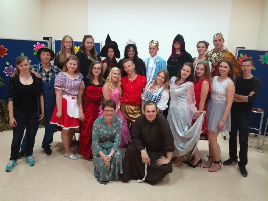 W dniu 13 czerwca 2018 odbył się w naszej szkole spektakl „Bajka, która się nie nazywa”. Przedstawienie miało charakter komediowej bajki. Jednak zawarte w nim myśli pokazywały toczącą się w nas walkę dobra ze złem oraz konsekwencje, które sprawiają, że ze zła może rodzić się kolejne zło, natomiast wybór dobra, może je pomnażać wokół nas. Liczne grono młodzieży z różnych klas szkoły, pod kierownictwem siostry Ewy Biernackiej i brata Mariusza Dunaja, bardzo aktywnie zaangażowało się w tę inicjatywę. Adaptację tekstu do przedstawienia przygotował br. Cezary Szcześniak, natomiast stroje wypożyczyła Anna Bureś, absolwentka naszej szkoły. Wielką radość sprawia nam świadomość, że to już 3 przedstawienie w tym roku szkolnym tworzącej się Grupy Teatralnej w naszej szkole.
