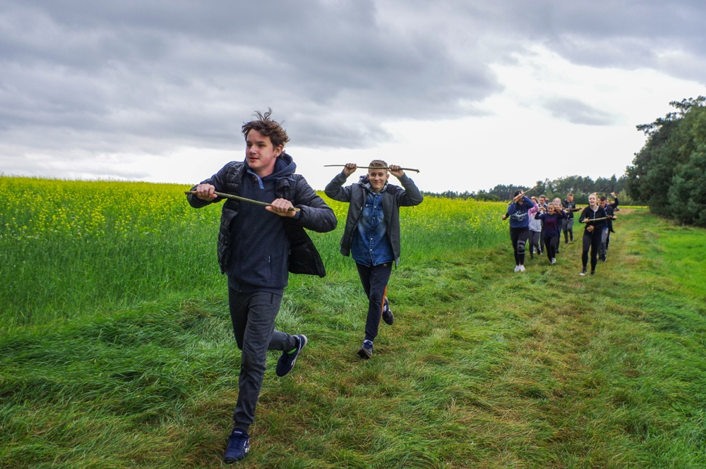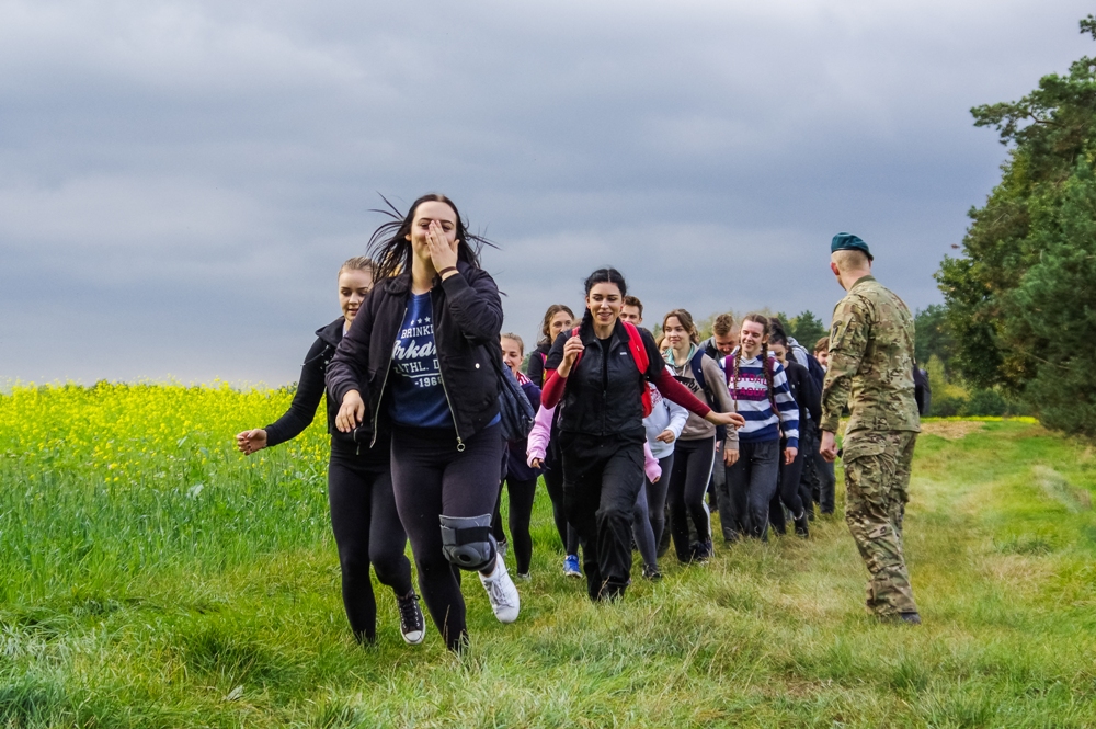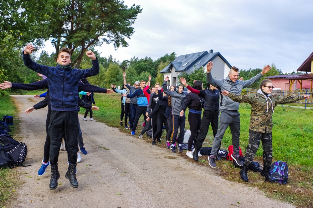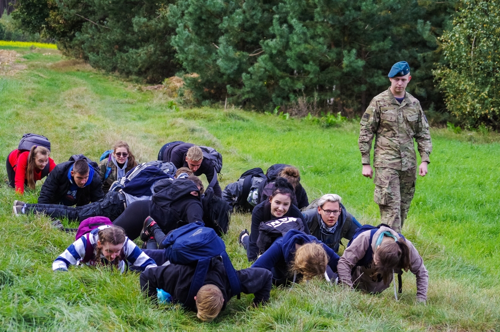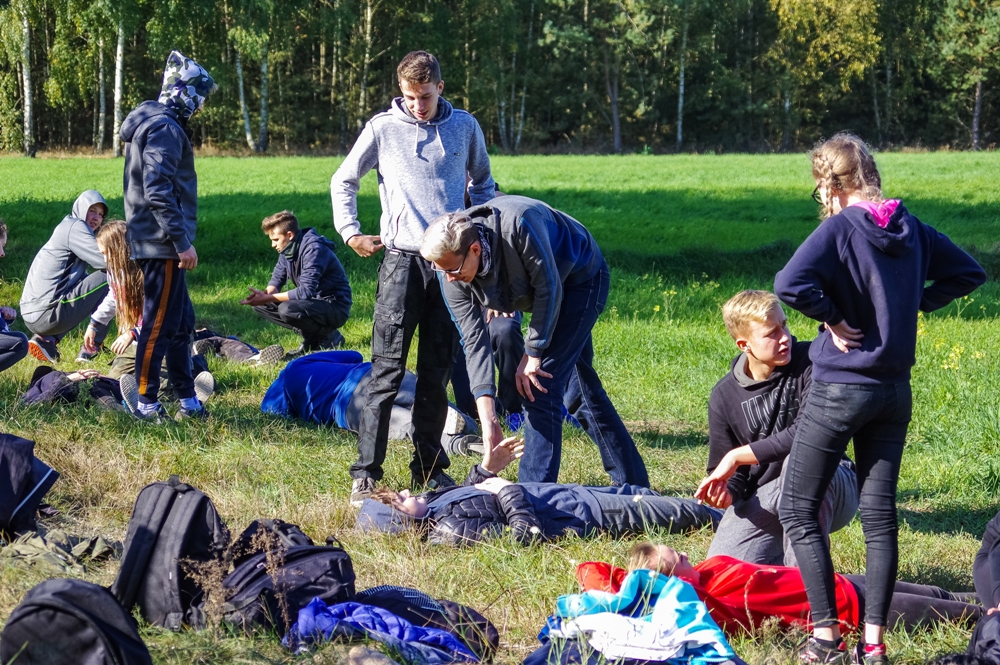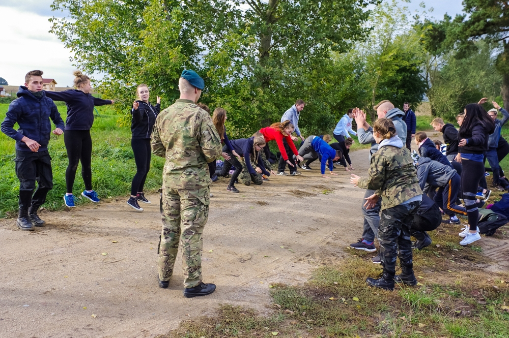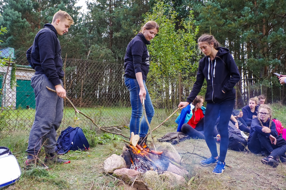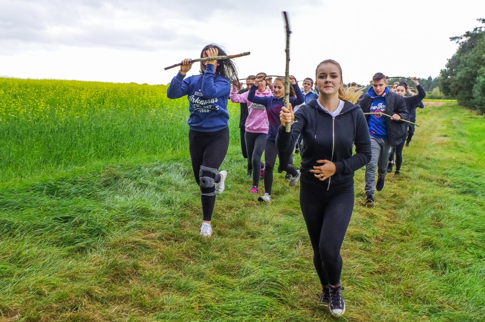 Uczniowie klas policyjnych po raz kolejny uczestniczyli w zajęciach terenowych ze Strzelcami ze Związku Strzeleckiego "Strzelec" Jednostka Strzelecka 1012 im. 33 Pułku Piechoty Ziemi Łomżyńskiej. Trening odbył się na terenie Ośrodka Szkolenia Taktycznego w Szczepankowie. Tradycyjnie, uczniowie rozpoczęli zajęcia od wojskowej rozgrzewki, podczas której na rozkaz „dowódcy” oprócz skakania i biegania wykonywali dość wyczerpujące pompki, scyzoryki i przysiady. Kolejnym etapem zajęć był instruktaż pierwszej pomocy przedmedycznej, po którym młodzież wcielając się w role poszkodowanych, dyspozytorów oraz osób udzielających pomocy ćwiczyła poprawne wykonywanie czynności ratowniczych. Następny punkt szkolenia to zabawa w podchody. Uczniowie podzielili się na dwie grupy. Zadaniem pierwszej było oddalenie się od ośrodka i znalezienie odpowiedniego miejsca do przygotowania obozowiska. Celem drugiej ciche podejście i zdobycie obozowiska „wroga”. Zabawa zakończyła się zasłużoną kiełbaską z ogniska.