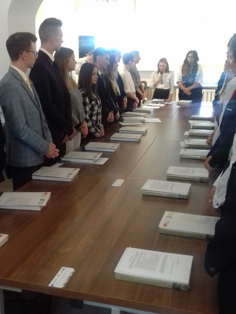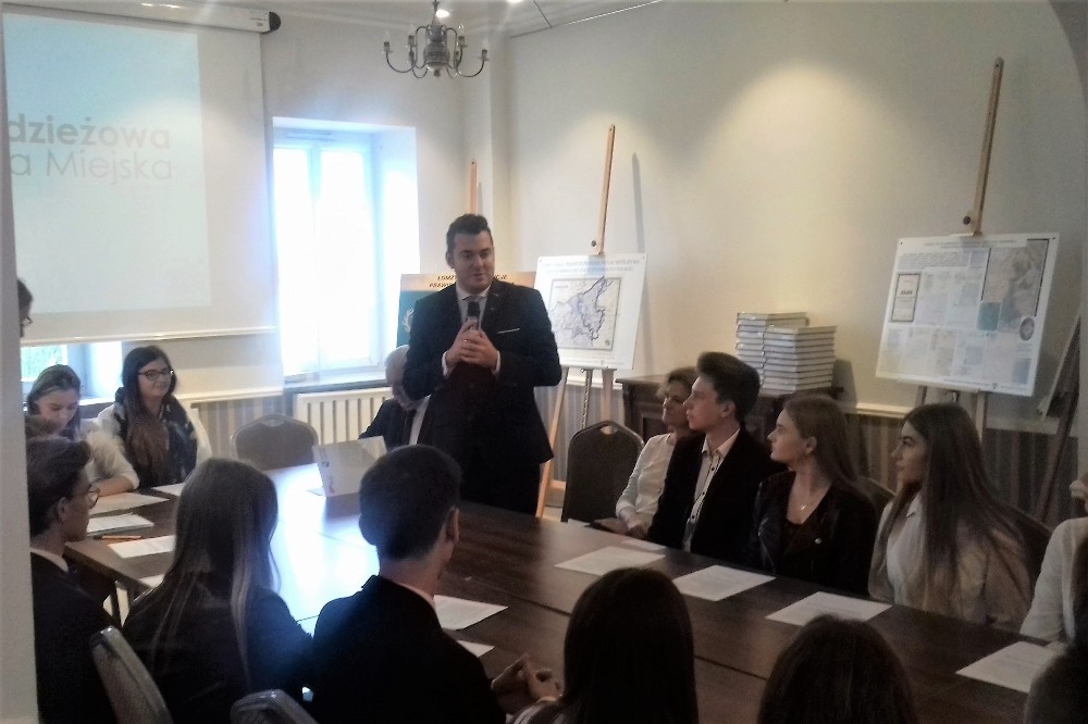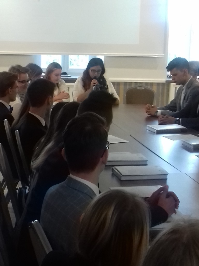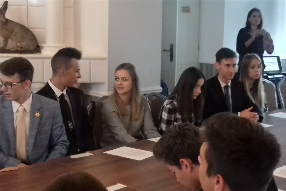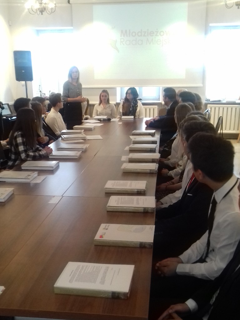 W dn. 28 września br. w sali głównej Domku Pastora odbyła się pierwsza sesja Młodzieżowej Rady Miejskiej, w której uczestniczyło 21 radnych- elektów. Obrady prowadziła nasza uczennica - Eliza Niedźwiecka z ZSTiO nr 4 ( klasa 3 TŻ). W części wprowadzającej sesji wziął udział aktualny Prezydent Łomży - pan Mariusz Chrzanowski, który po krótkim przemówieniu wręczył akty nominacji do Młodzieżowej Rady Miasta Łomży radnym - elektom wraz z pamiątkową książką o naszym mieście. Później, wybrani w czerwcu radni, złożyli uroczyste ślubowanie w obecności Prezydenta Miasta Łomży. Warto nadmienić, iż drugą osobą reprezentującą naszą szkołę w w/w radzie szkolę jest Julia Ruszczyk z klasy 2 Ap.