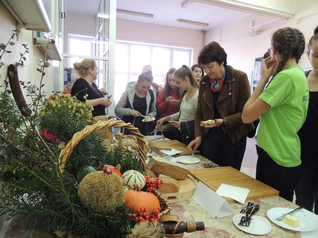 Kulminacyjnym punktem akcji był dzień 17.10.2018r. kiedy to zaproszona klasa trzecia Gimnazjum przy Szkole Podstawowej Nr 1 w Łomży, uczestniczyła w pokazie produkcji i wypieku zdrowego chleba na zakwasie. Z okazji obchodów 600-lecia Łomży „Tydzień dobrego chleba i zdrowego stylu życia” został połączony z warsztatami gastronomicznymi - „Średniowieczna biesiada”. W tym dniu młodzież, dzieci oraz uczniowie i pracownicy naszej szkoły, uczestniczyli także w prezentacji stoisk związanych z surowcami wykorzystywanymi do wypieku chleba oraz brali udział w ocenie organoleptycznej świeżo wypieczonego pieczywa.
