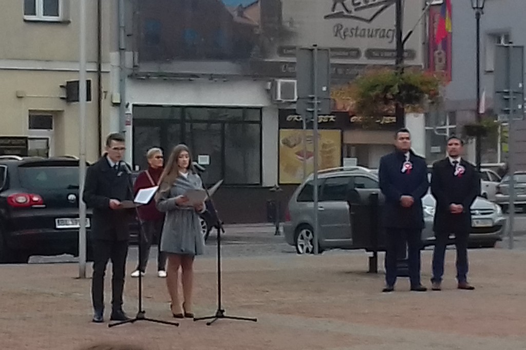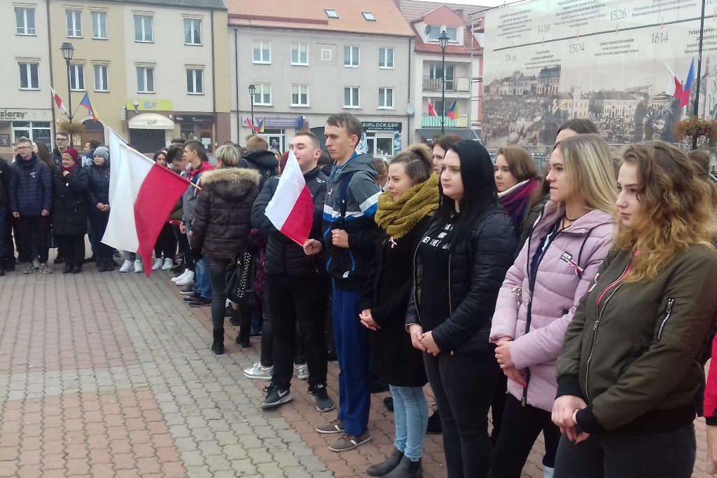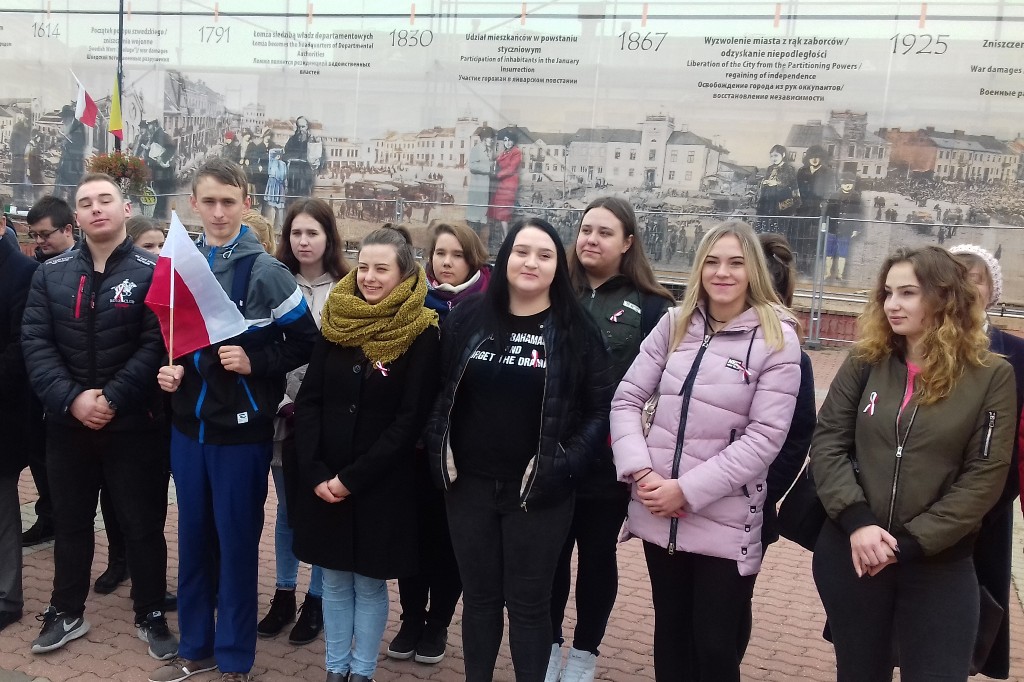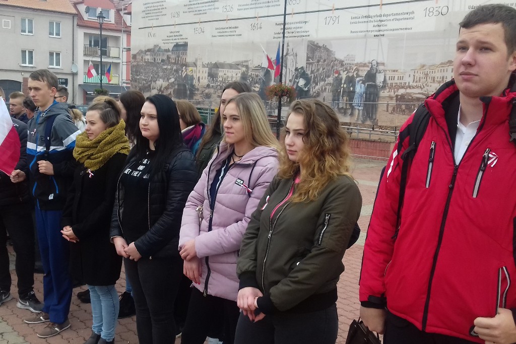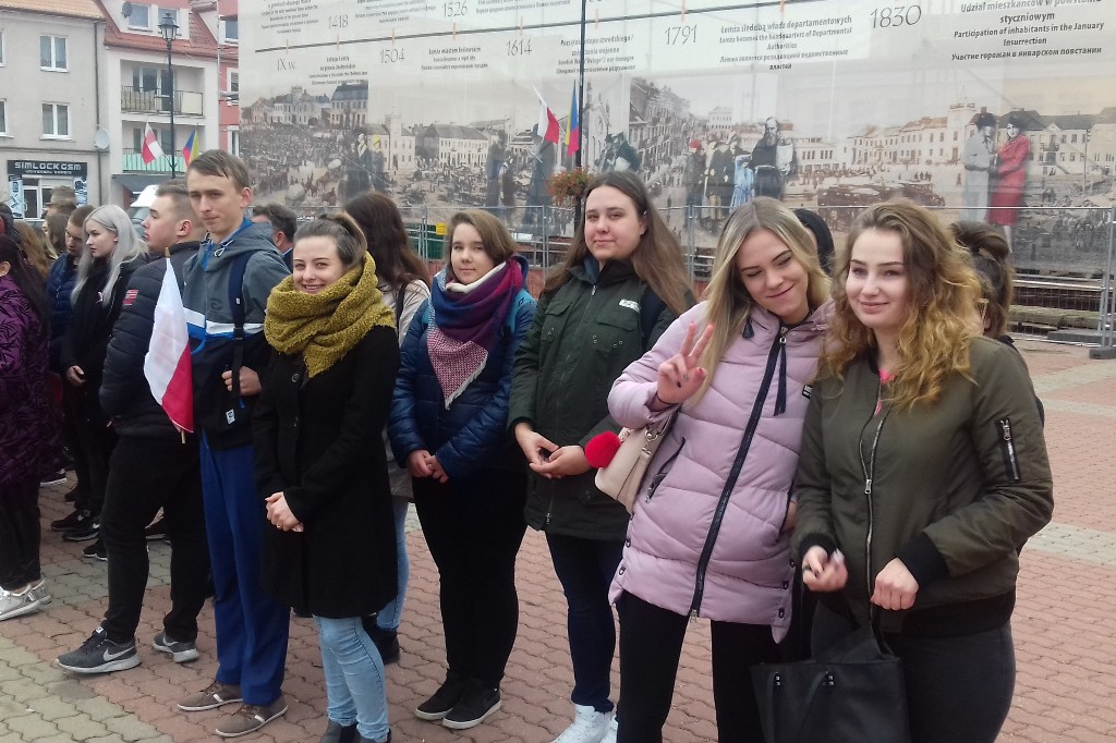 W dn. 09.11.2018 r., na dwa dni przed 100-ną rocznicą odzyskania przez Polskę niepodległości, delegacja uczniów z naszej szkoły (wraz z nauczycielami - p. Wiesławem Czupryńskim i p. Ewą Rożniatą) wzięła udział w uroczystym odśpiewaniu hymnu państwowego na Starym Rynku. Uroczystość zorganizowano na wniosek radnych Młodzieżowej Rady Łomży, w skład której wchodzą m.in. dwie nasze uczennice: Eliza Niedźwiecka z klasy 3TŻ oraz Julia Ruszczyk z klasy 2Ap LO. Przedstawiciele młodzieżowej rady przywitali władze miasta z Prezydentem Łomży Panem Mariuszem Chrzanowskim na czele oraz zaproszonych gości (w tym młodzież z opiekunami z łomżyńskich szkół ponadgimnazjalnych) licznie zgromadzonych na placu przed Ratuszem.