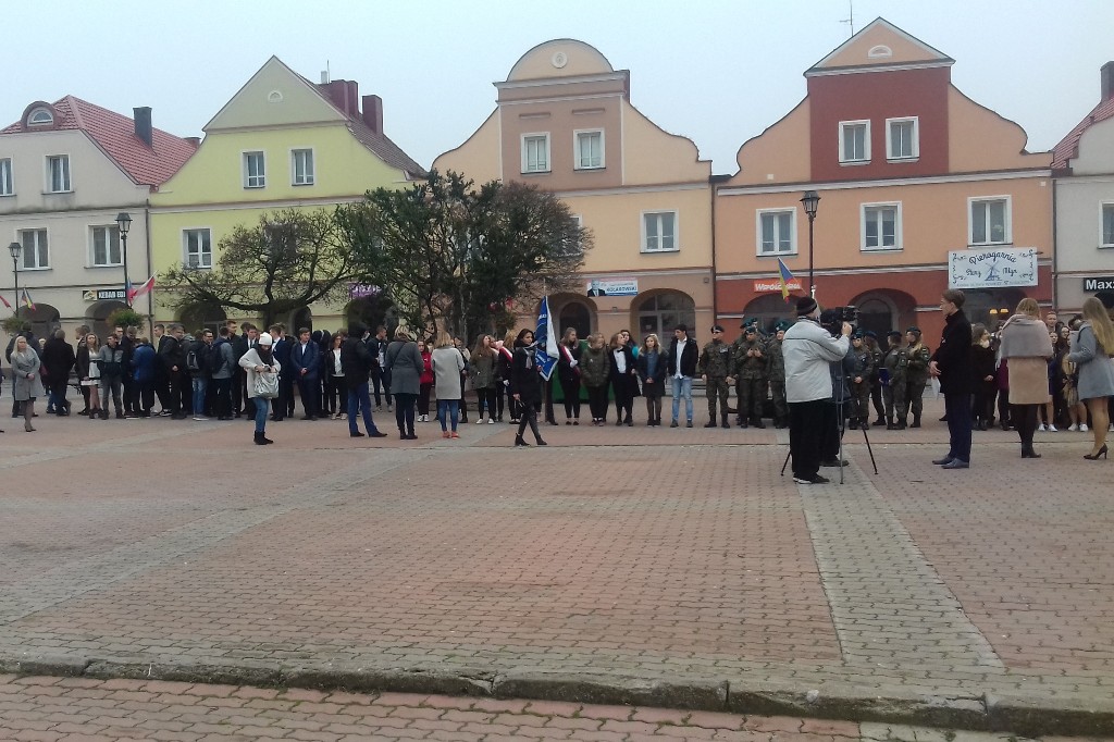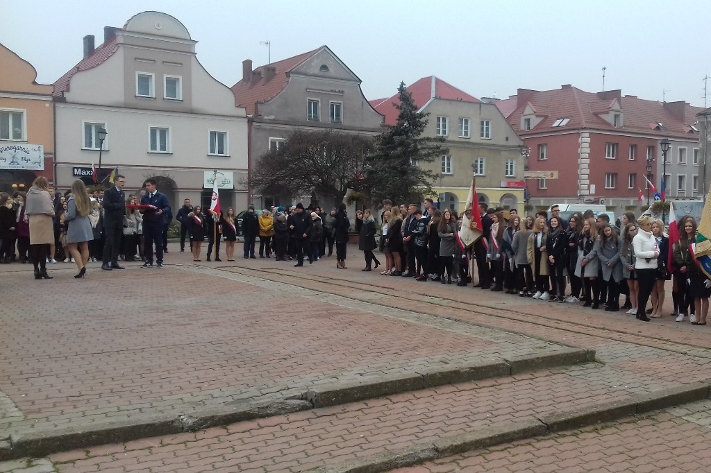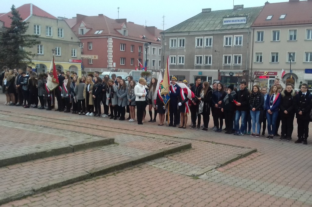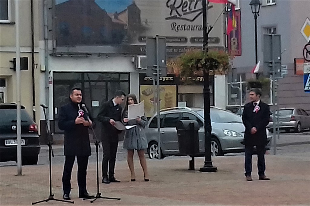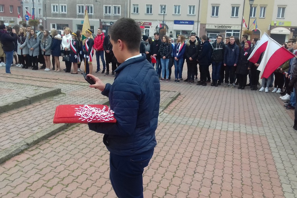 W dn. 09.11.2018 r., na dwa dni przed 100-ną rocznicą odzyskania przez Polskę niepodległości, delegacja uczniów z naszej szkoły (wraz z nauczycielami - p. Wiesławem Czupryńskim i p. Ewą Rożniatą) wzięła udział w uroczystym odśpiewaniu hymnu państwowego na Starym Rynku. Uroczystość zorganizowano na wniosek radnych Młodzieżowej Rady Łomży, w skład której wchodzą m.in. dwie nasze uczennice: Eliza Niedźwiecka z klasy 3TŻ oraz Julia Ruszczyk z klasy 2Ap LO. Przedstawiciele młodzieżowej rady przywitali władze miasta z Prezydentem Łomży Panem Mariuszem Chrzanowskim na czele oraz zaproszonych gości (w tym młodzież z opiekunami z łomżyńskich szkół ponadgimnazjalnych) licznie zgromadzonych na placu przed Ratuszem.