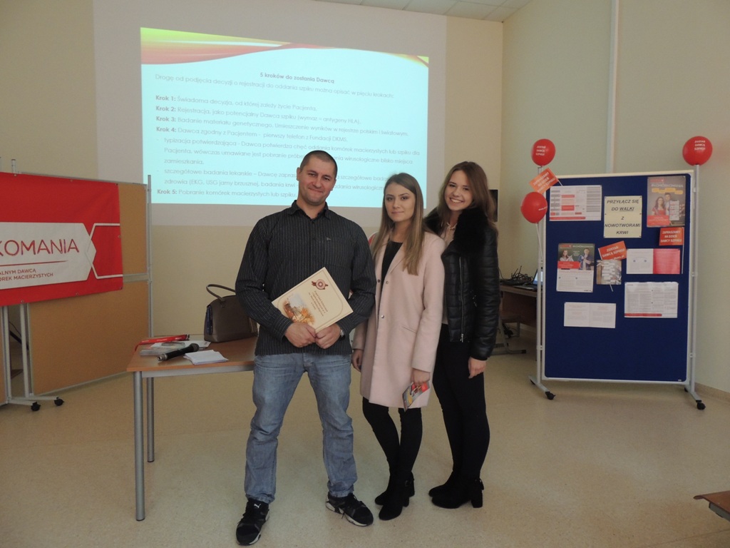 Decyzję o zostaniu Dawcą podjął kilka lat temu i od tej pory zachęca do tego innych. W czasie spotkania dzielił się swoją wiedzą i obalał mity na temat procedur pobierania szpiku. Zapewniał, że jest to bezpieczne i nie powoduje żadnych skutków zdrowotnych. Mówił też o swoich wątpliwościach i obawach ale też o wielkiej satysfakcji gdy jego komórki macierzyste przeszczepiono choremu człowiekowi.