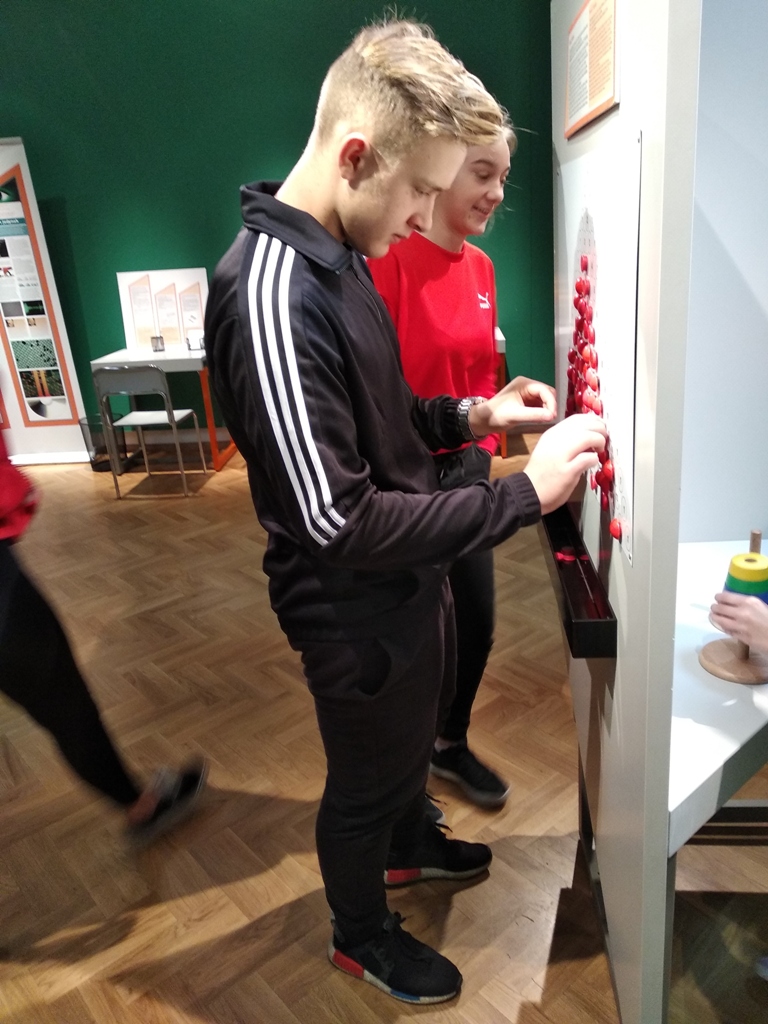Dnia 22 listopada 2018 r. uczniowie z klas 1 AP oraz 1 PP pod opieką Agaty Siwik i Beaty Bednarczyk odwiedzili Muzeum Północno-Mazowieckie w Łomży. Odwiedzając wystawę interaktywną, uczniowie przekonali się, że matematykę łatwo znaleźć wokół nas. Zagadnienia związane z otaczającymi nas liczbami zaprezentowano nie tylko poprzez opisy, ale także w formie eksperymentów, które odwiedzający wystawę może samodzielnie lub zespołowo przeprowadzać. Wszystkie zagadki i łamigłówki logiczne dzięki pracy zespołowej udało się rozwiązać, bo przecież wszyscy wiemy, że w zespole siła.