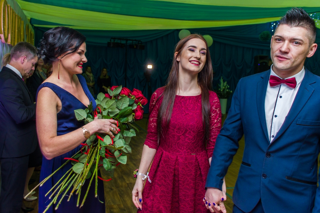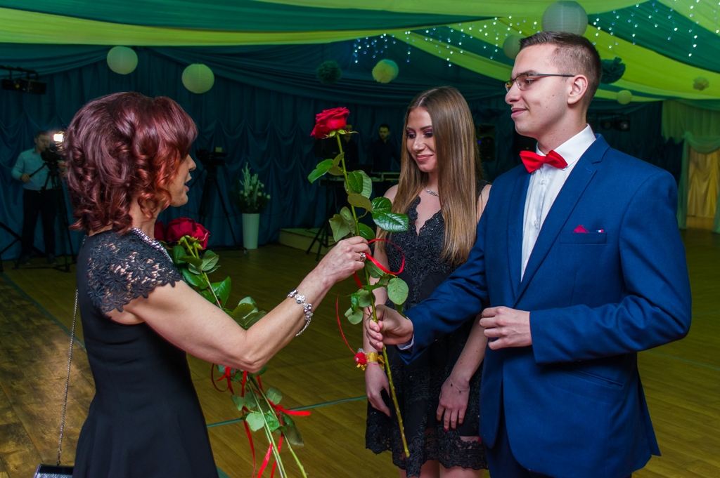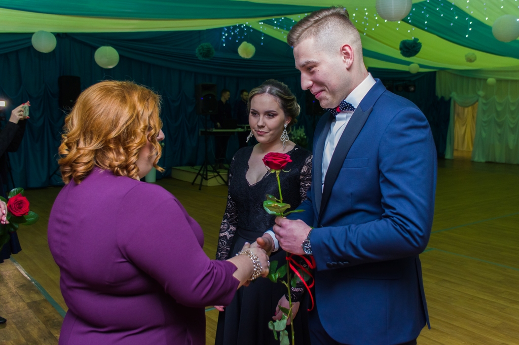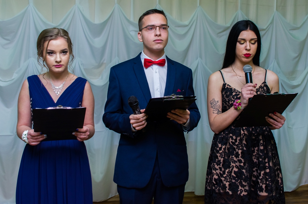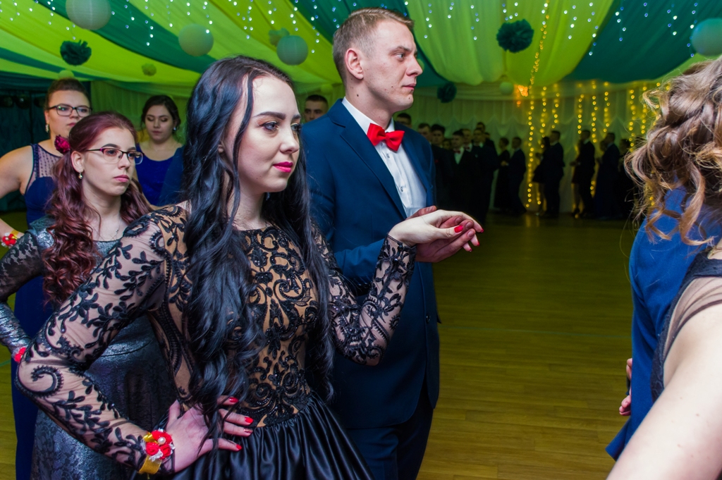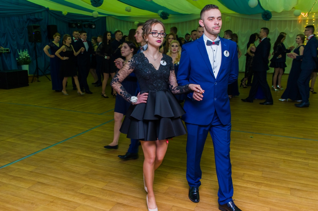 O godzinie 19.00 wszystkich zebranych przywitali Katarzyna Mroczkowska z 4AH, Mateusz Darmochwał z 4TŻ oraz Sandra Ustaszewska z 3AP. Część oficjalna rozpoczęła się minutą ciszy dla uczczenia pamięci prezydenta Gdańska Pawła Adamowicza, który zginął z rąk zamachowca. Następnie uczniowie przypomnieli, że już tylko symboliczne sto dni pozostało do egzaminów maturalnych. Powspominali również najweselsze i najtrudniejsze momenty spędzone w szkole. Uczniowie klas maturalnych złożyli podziękowania i kwiaty na ręce dyrekcji oraz wychowawców: pani Katarzynie Więsak, pani Magdalenie Kuczewskiej oraz pani Anny Ulińskiej. Podziękowania i kwiaty otrzymali również nauczyciele i rodzice obecni na Studniówce. Pan dyrektor Artur Ciborowski wygłosił okolicznościowe przemówienie, w imieniu wychowawców głos zabrała pani Anna Ulińska, a w imieniu Rodziców – pani Ewa Korytkowska. Najważniejszym momentem wieczoru był tradycyjny polonez odtańczony przez wszystkie pary uczestniczące w Studniówce. Po pamiątkowych zdjęciach rozpoczęła się zabawa, która trwała do białego rana. Serdecznie dziękujemy wszystkim osobom zaangażowanym w zorganizowanie Balu Studniówkowego, zaś maturzystom życzymy, aby zbliżające się egzaminy dojrzałości zdali z jak najlepszymi wynikami.