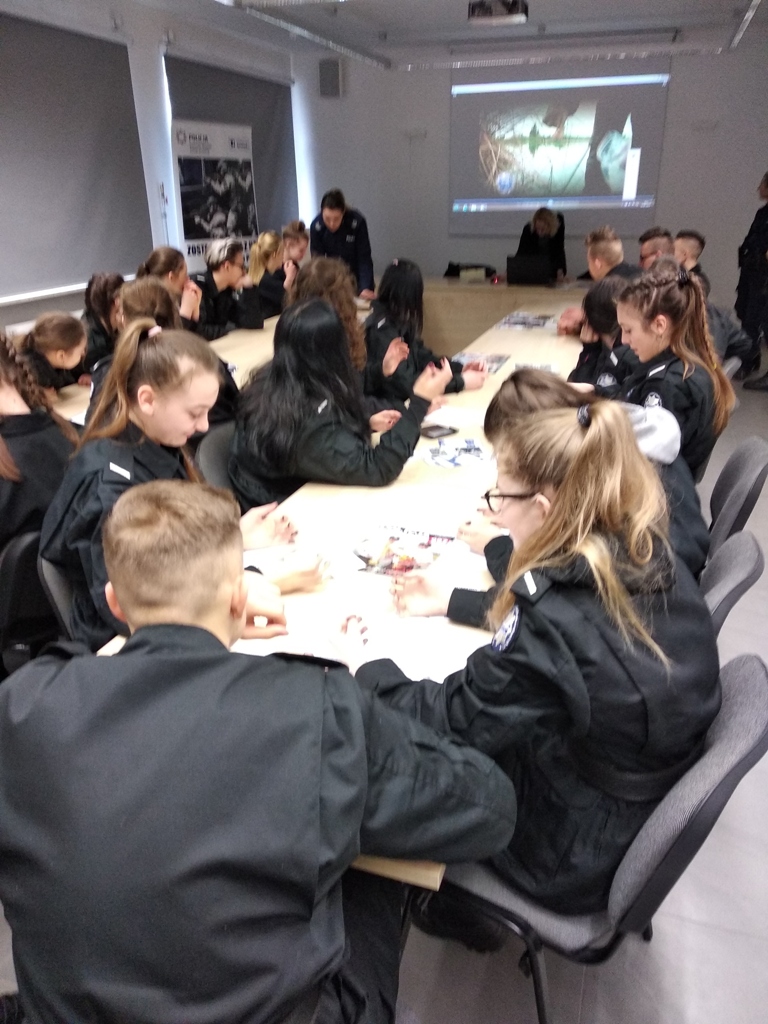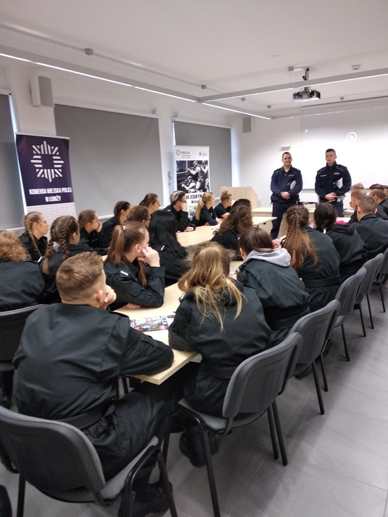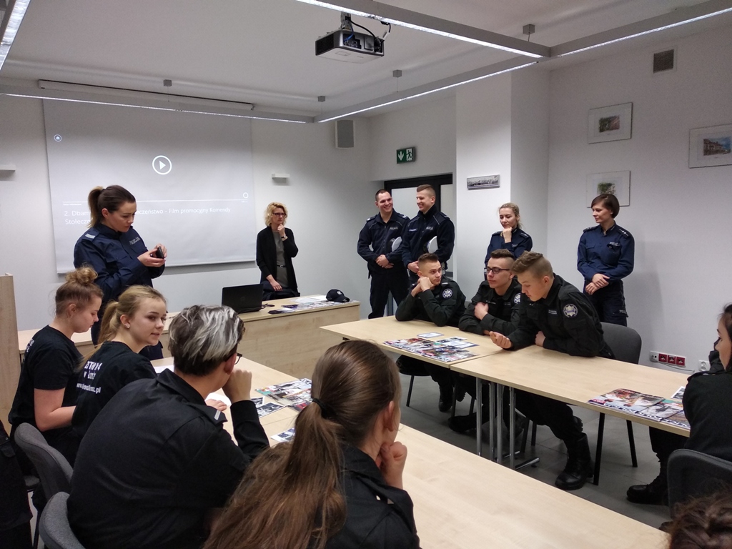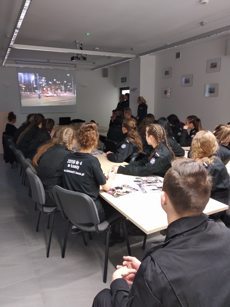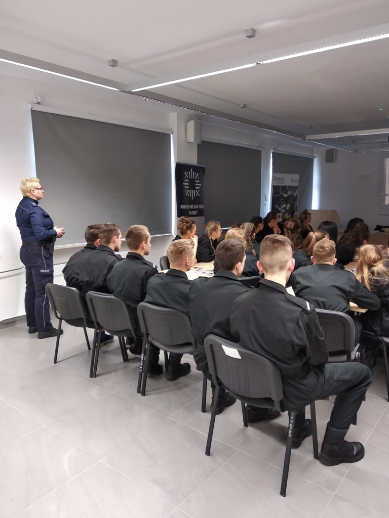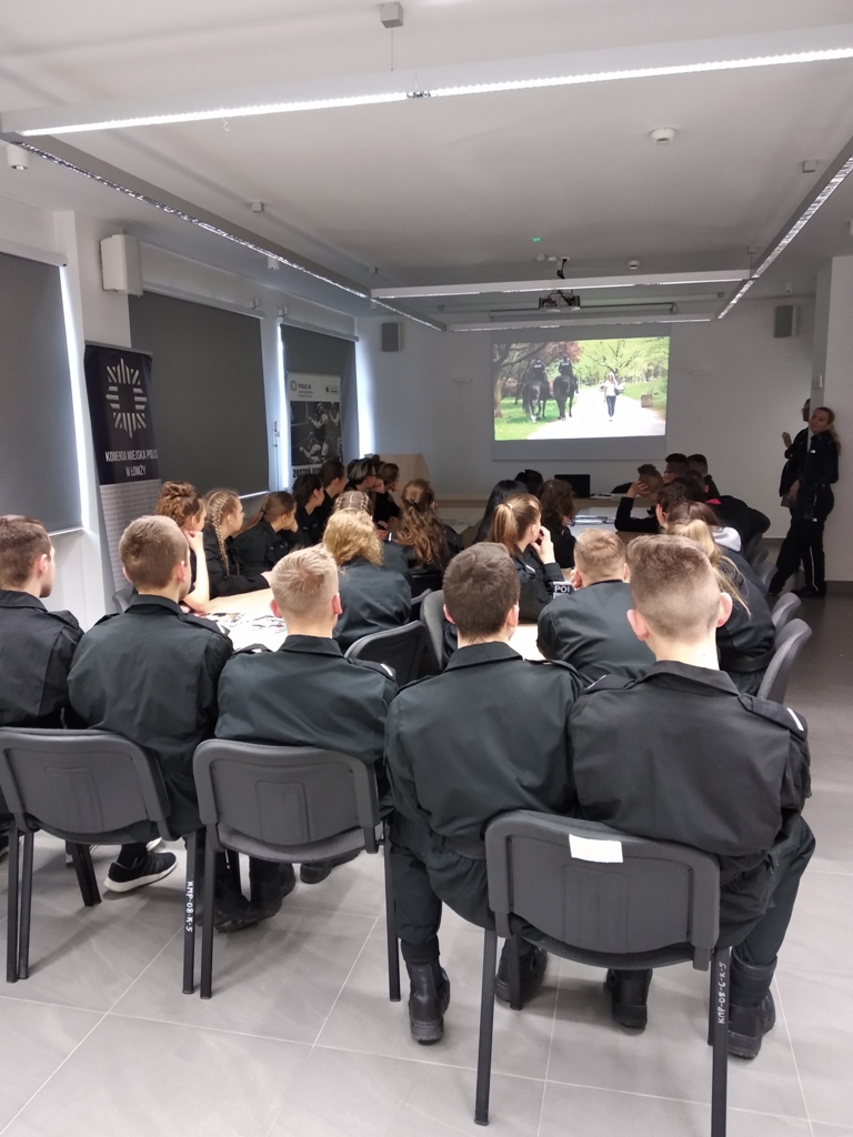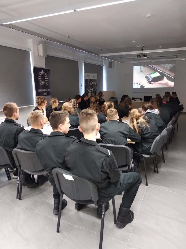 Uczniowie klas policyjnych 1AP i 2AP gościli 14 marca 2019 r. w murach Komendy Miejskiej Policji w Łomży. Funkcjonariusze opowiadali o swoim zawodzie i zachęcali do wstąpienia w szeregi policyjnej formacji. O codziennej pracy policjantów opowiadał między innymi technik kryminalistyki, przewodnik psa służbowego i dzielnicowa. Młodzież mogła obejrzeć wnętrze radiowozu wykorzystywanego do obsługi zdarzeń drogowych i porozmawiać o wykonywanej pracy z policjantami ruchu drogowego. Mundurowi chętnie dzielili się doświadczeniami z przebiegu swojej wieloletniej służby. Etapy rekrutacji oraz warunki jakie musi spełnić kandydat, aby zostać funkcjonariuszem Policji przedstawili natomiast specjaliści z Wydziału Prezydialnego Kadr i Szkolenia, a także policyjni profilaktycy.