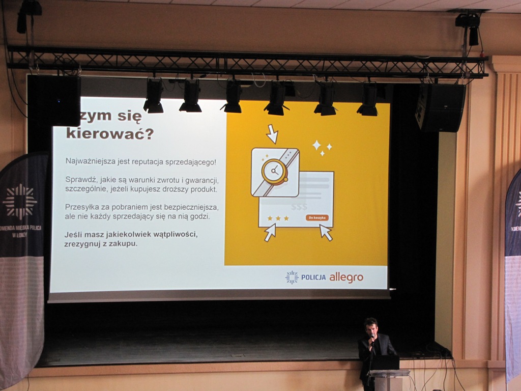 Komenda Miejska Policji w Łomży wraz z Wydziałem do walki z Cyberprzestępczością Komendy Wojewódzkiej Policji w Białymstoku w porozumieniu z Grupą Allegro w dniu 19 marca 2019 roku zorganizowała spotkanie w ramach programu "Bezpieczne za@kupy w sieci”.