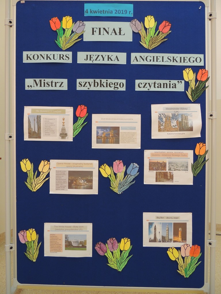 4 kwietnia 2019 odbył się Finał Konkursu Języka Angielskiego „Mistrz szybkiego czytania”. Poprzedziły go eliminacje klasowe przeprowadzone we wszystkich klasach przedmaturalnych i maturalnych. W wyniku eliminacji zostało wyłonionych 24 uczestników etapu międzyklasowego. Konkurs polegał na przeczytaniu trzech tekstów i rozwiązaniu dołączonych do nich testów. Teksty konkursowe były bardzo zróżnicowane i pochodziły z arkuszy egzaminacyjnych na poziomie podstawowym i rozszerzonym.