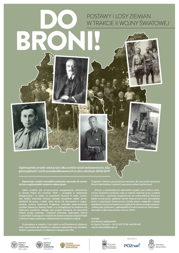 23 kwietnia 2019 r. w siedzibie białostockiego oddziału Instytutu Pamięci Narodowej rozstrzygnięto I etap ogólnopolskiego konkursu „Do broni! Postawy i losy ziemian w trakcie II wojny światowej”. Chętni mogli zgłaszać się w trzech przedziałach wiekowych: szkoły podstawowe, gimnazja oraz szkoły ponadgimnazjalne. Prace zgłaszano w kategoriach: praca pisemna, multimedialna oraz fotograficzna. Do etapu wojewódzkiego wpłynęło 7 prac od 22 uczestników. Komisja Wojewódzka konkursu zakwalifikowała trzy z nich do etapu ogólnopolskiego.