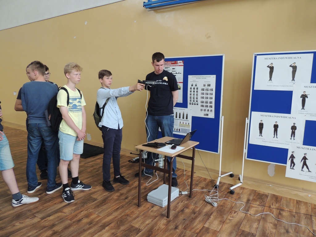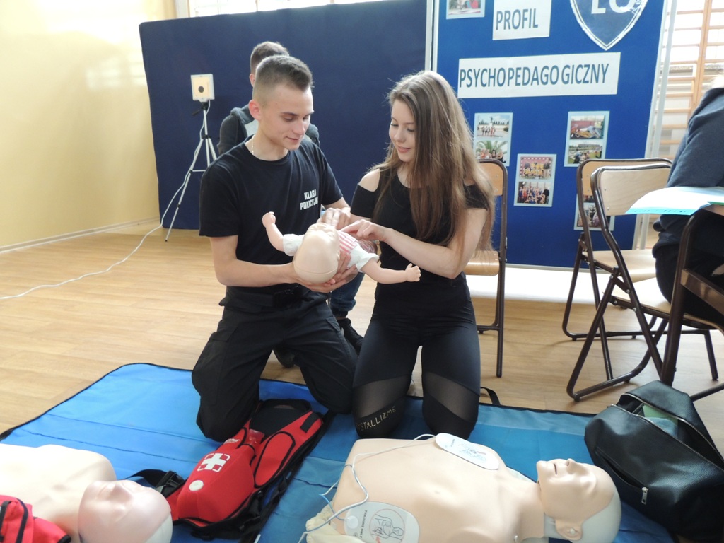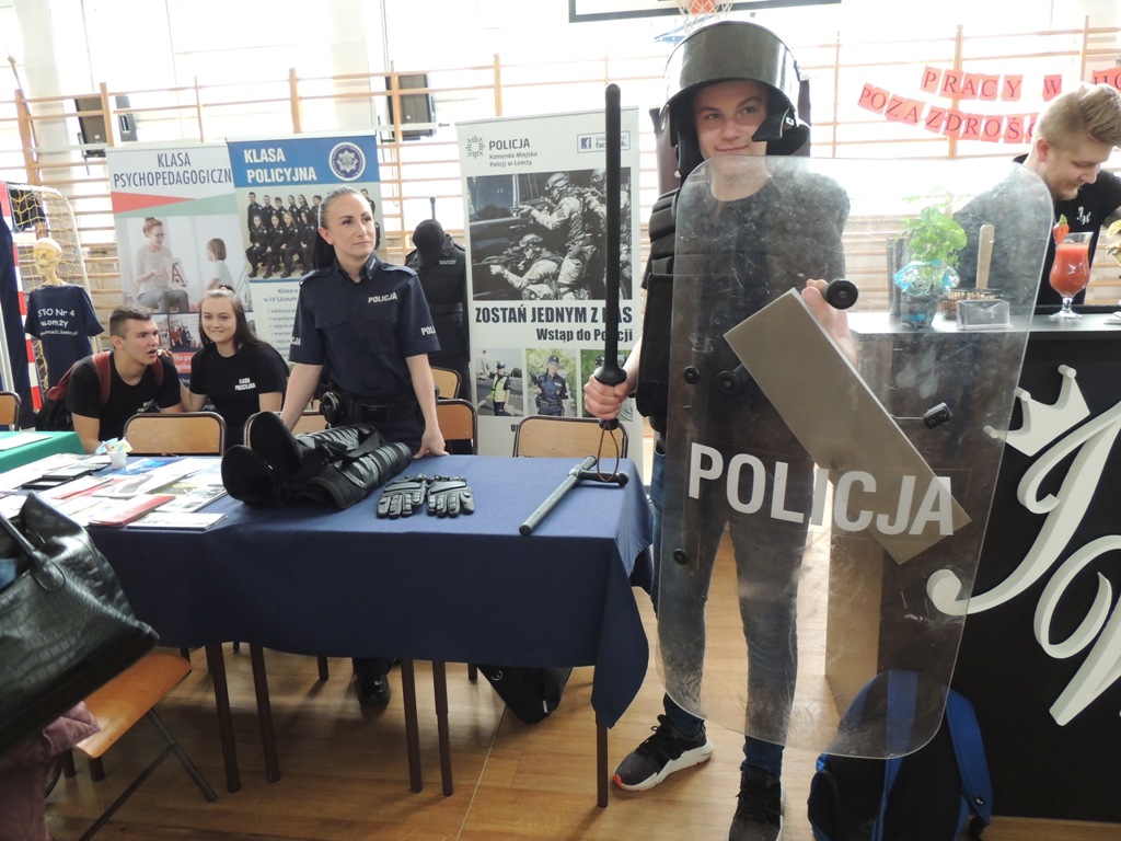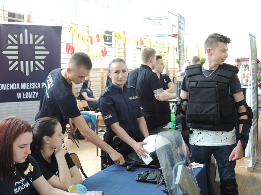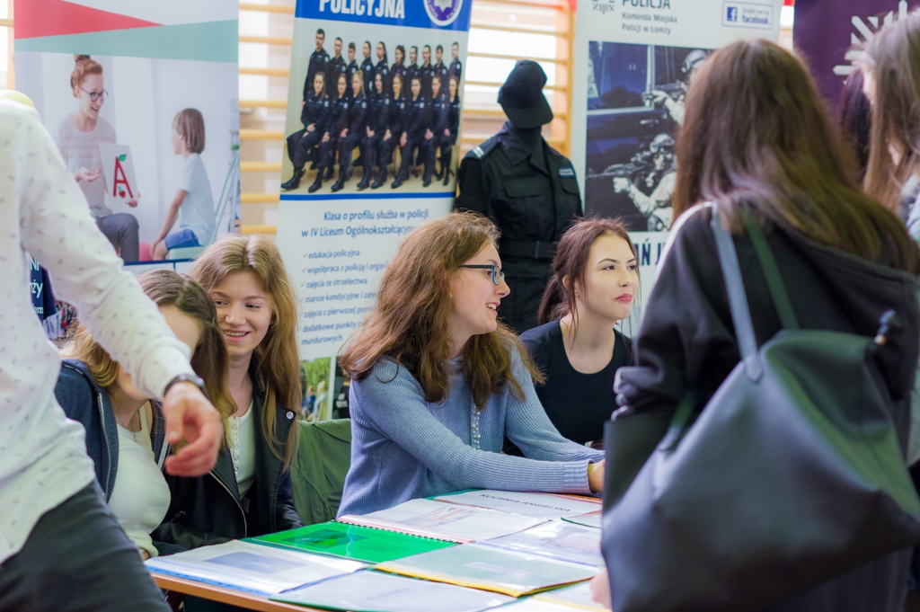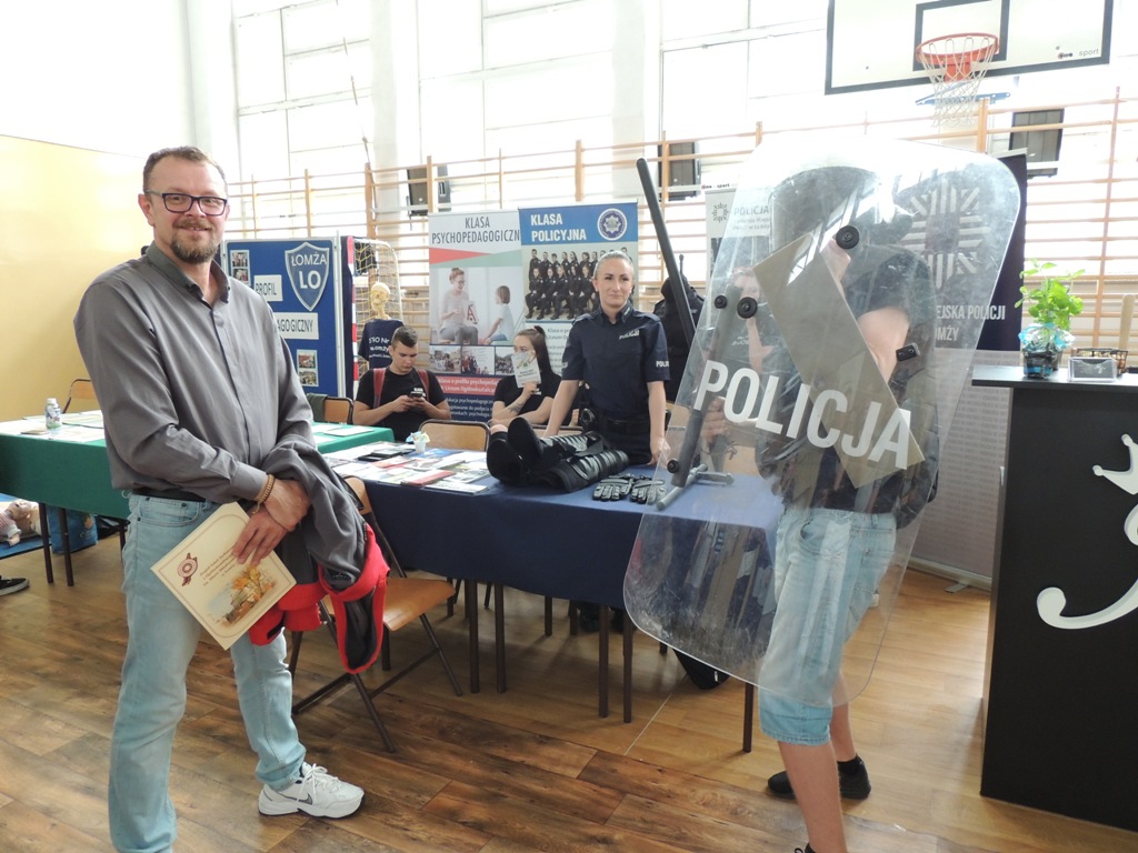 Uczniowie zainteresowani nauką w liceum ogólnokształcącym w klasie o profilu „Służba w policji” mogli odbyć bezpieczny trening strzelecki przy użyciu trenażera policyjnego. Uczyli się też udzielania pierwszej pomocy. Ponadto zapewniono im spotkanie z paniami z Komendy Miejskiej Policji w Łomży: aspirant Moniką Lipińską i posterunkową Beatą Pawelczyk. Oprócz wyposażenia radiowozu poznali ekwipunek policjanta służący zabezpieczeniu imprez masowych oraz sposoby pobierania odcisków palców.