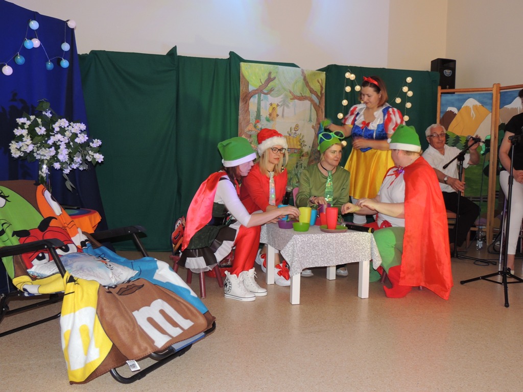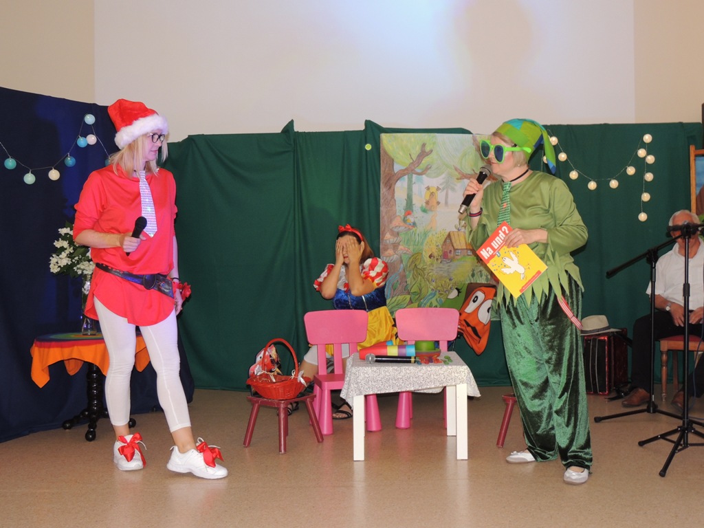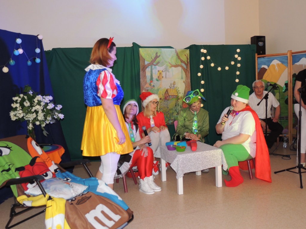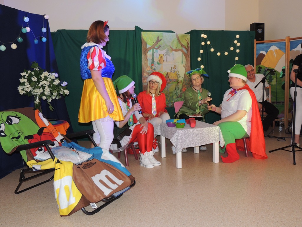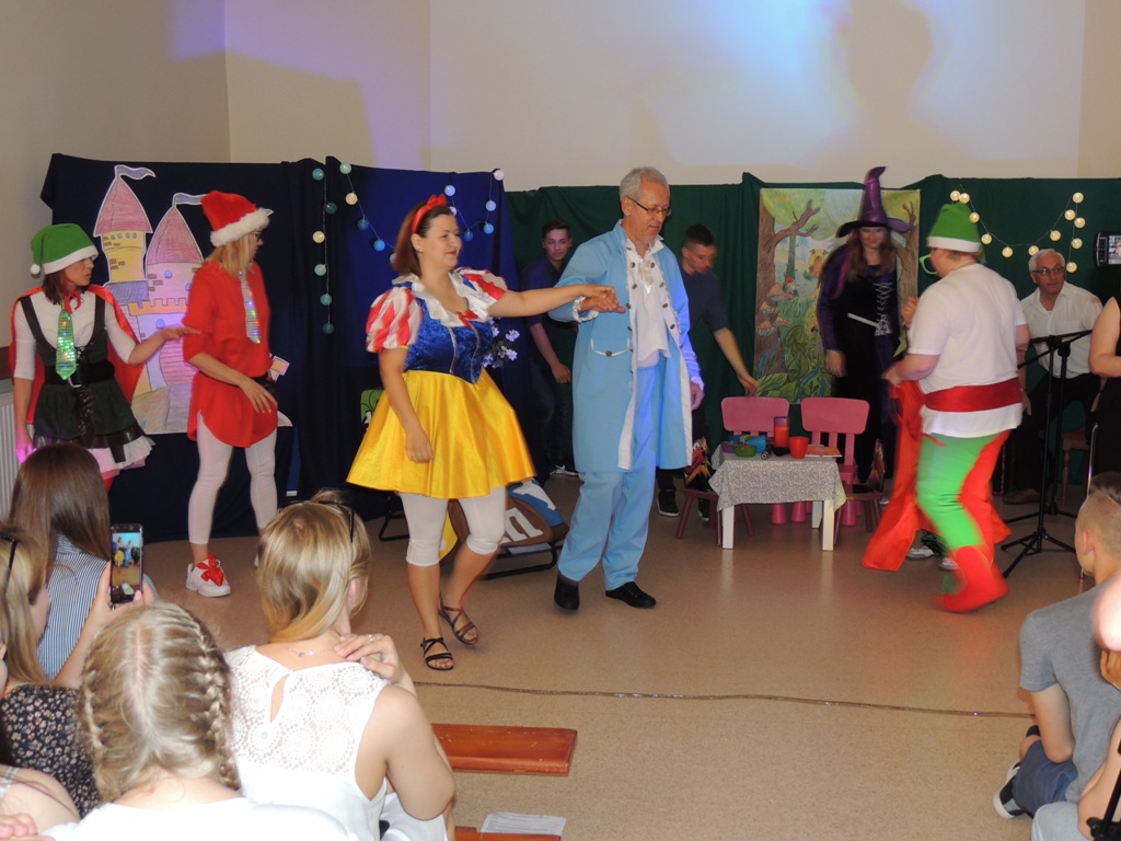 Z okazji obchodzonego w czerwcu Dnia Dziecka nauczyciele naszej szkoły wystąpili dla uczniów w zabawnej adaptacji znanej bajki o królewnie Śnieżce i (niekoniecznie) siedmiu krasnoludkach. W niecodziennym spektaklu uczniowie mogli zobaczyć swoich nauczycieli wcielających się w bajkowe role i prezentujących swoje ukryte talenty. Spektaklowi towarzyszyły utwory muzyczne zagrane i zaśpiewane na żywo przez założony specjalnie na tę okazję nauczycielski zespół muzyczny. Całości dopełniała klimatyczna scenografia. Celem przedstawienia była dobra zabawa, przekazanie widowni pozytywnej energii oraz integracja społeczności szkolnej, co – sądząc po gorącym i entuzjastycznym przyjęciu przez uczniów – zostało osiągnięte.