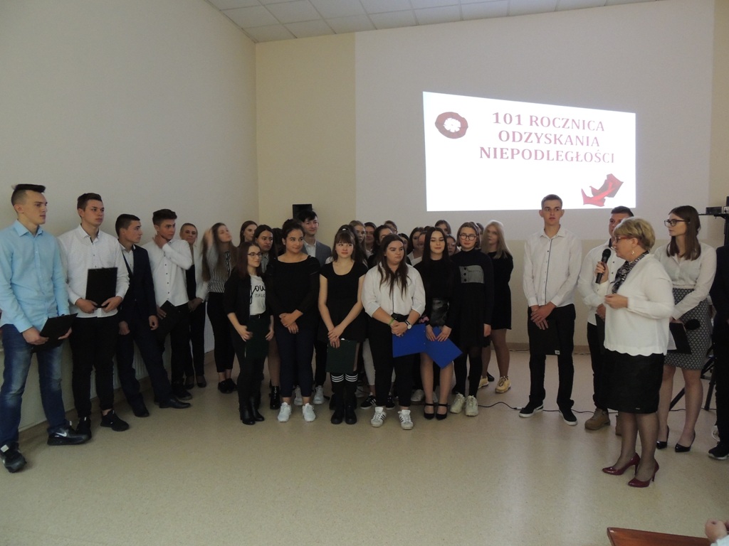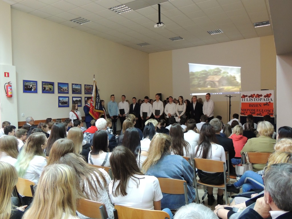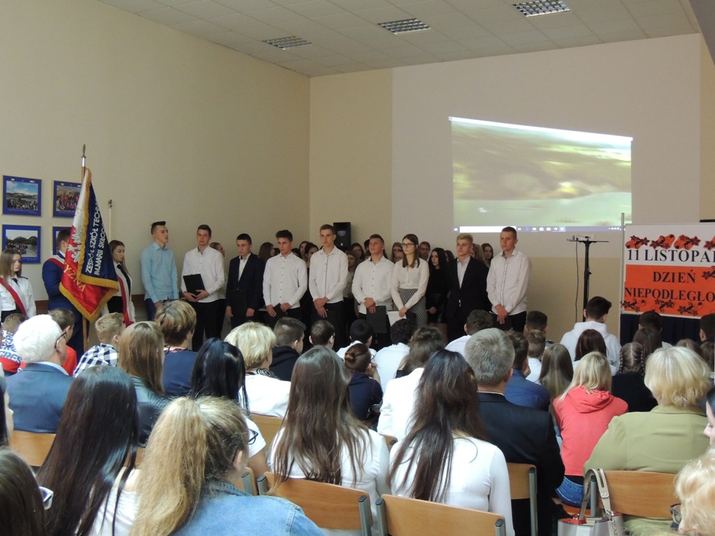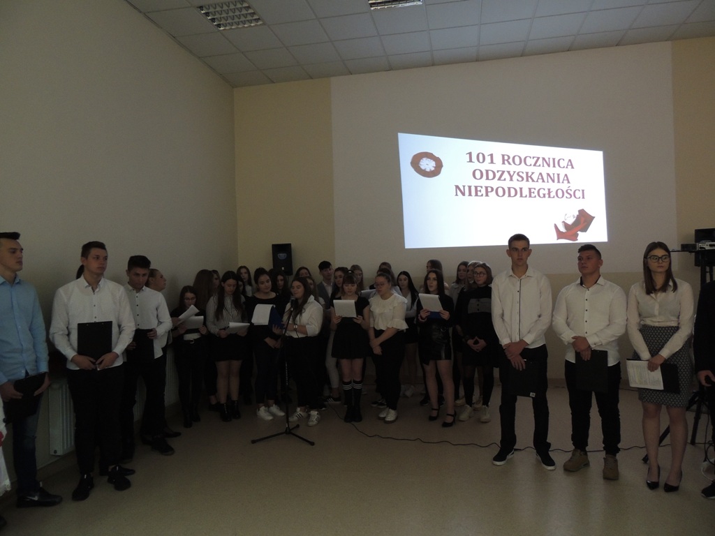 Pieśni patriotyczne wykonywane przez szkolny chór przywołały ważne wydarzenia historyczne związane z odzyskaniem przez Polskę niepodległości.