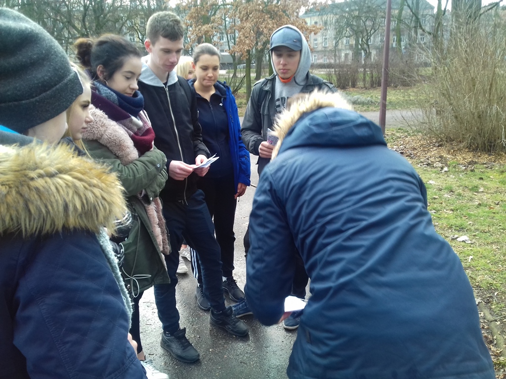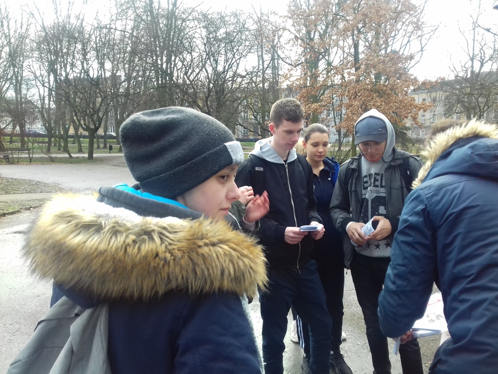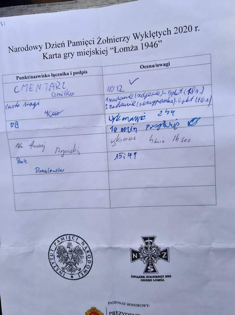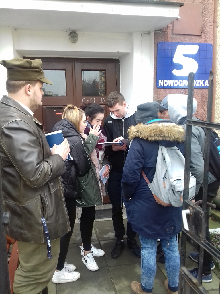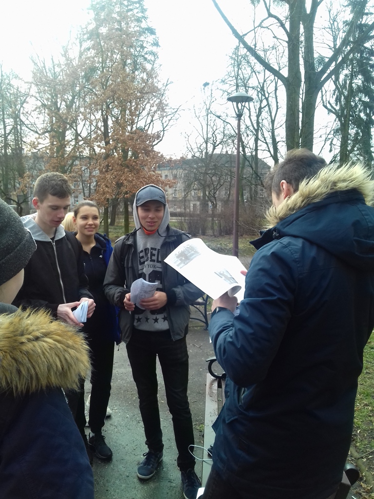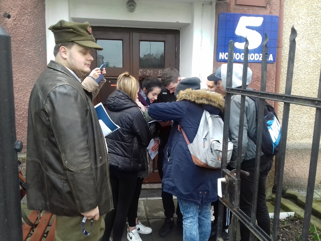 Bardzo miło mi poinformować, że grupa uczniów z naszej szkoły wygrała w dniu 03.03. Grę Miejską - „Łomża 1946”. Gra była zorganizowana przez IPN Białystok przy współudziale ZŻ NSZ Okręgu Łomżyńskiego oraz Stowarzyszenia Kulturalnego "A La Longue". Grupa była pod opieką p. Wiesława Czupryńskiego. Obok prezentujemy zdjęcia z tej ciekawej lekcji historii w terenie. Uczniowie otrzymywali rozkazy do wykonania. Często trzeba było odszyfrować wiadomość pisną alfabetem Morsa lub odcyfrować wiadomość z tablicy wmurowanej w budynek Szkoły Muzycznej (dawnego więzienia). W różnych punktach miasta czekali na naszą grupę tzw. łącznicy. Trzeba było podać im hasło i uzyskać odzew, a znakiem rozpoznawczym była gazeta trzymana przez łącznika. Łącznik przekazywał kolejne rozkazy do wykonania na kartce. Np. trzeba było odnaleźć grób jednego z żołnierzy niezłomnych po odcyfrowaniu kodu z nazwiskiem . Oprócz łączników na mieście pojawili się tzw. dezinformatorzy, którzy podawali fałszywe hasła i pełnili rolę agentów dawnego UB w Łomży. W budynku przy ul. Nowogrodzkiej nr 5 (dawny budynek UB w Łomży) otrzymaliśmy kopie spisów osób zatrzymanych po wojnie i przetrzymywanych na UB i trzeba było policzyć zatrzymanych z rocznika 1928 i młodszych. Zadania były ciekawe i wzbudziły dużo emocji. Poza tym presja czasu i kilometry przechodzone przyczyniły się do poszerzenia wiedzy i wzmocnienia sprawności fizycznej uczestników. Ostatnim punktem było odczytanie hasła, którego litery otrzymywaliśmy wraz z kolejnymi zadaniami. Oczywiście po skończonej grze udaliśmy się na pyszną kawę z opiekunem p. Wiesławem Czupryńskim.