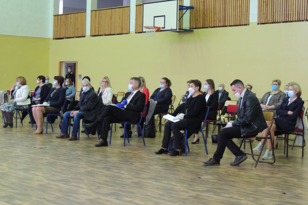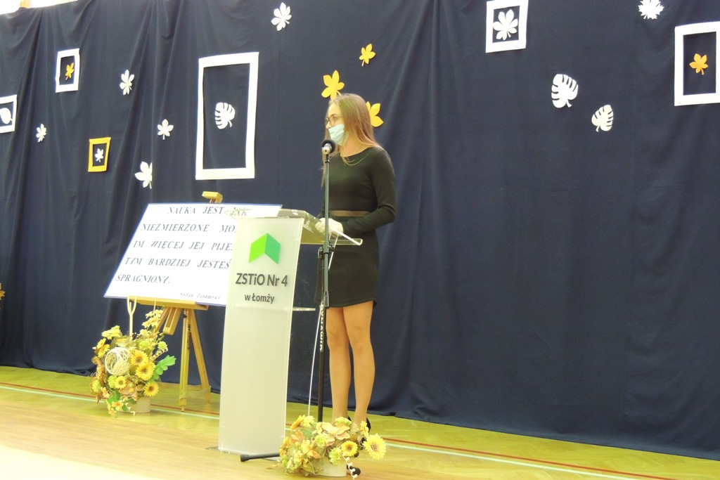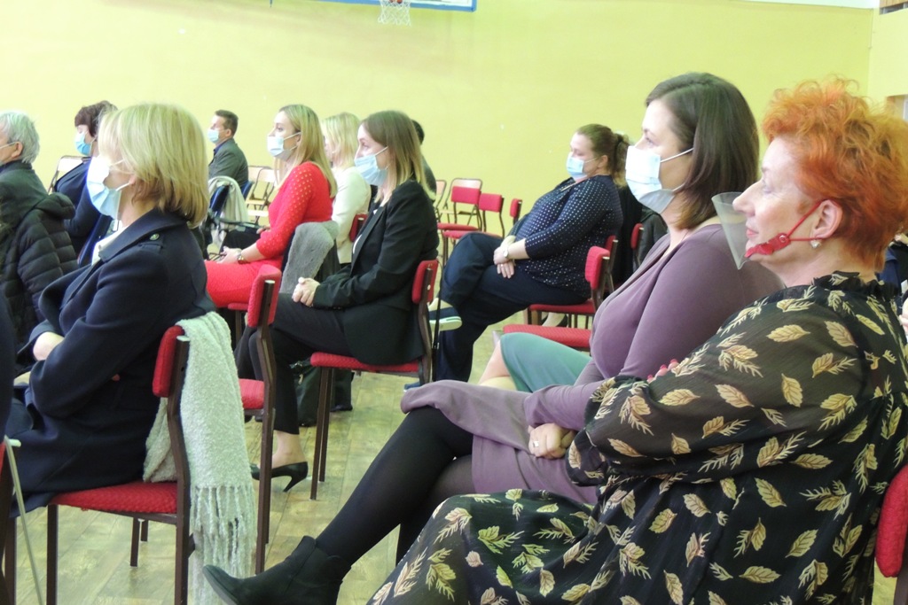 Pani Janina Jemielity, przedstawicielka Prezydium Rady Rodziców, skierowała słowa uznania i podziękowania dla pracowników szkoły. Dyrektor szkoły pan Artur Ciborowski odczytał list skierowany do pracowników szkoły przez Prezydenta Miasta Łomża Mariusza Chrzanowskiego oraz wręczył nauczycielom i pracownikom szkoły nagrody, które są corocznie przyznawane w Dniu Edukacji Narodowej.