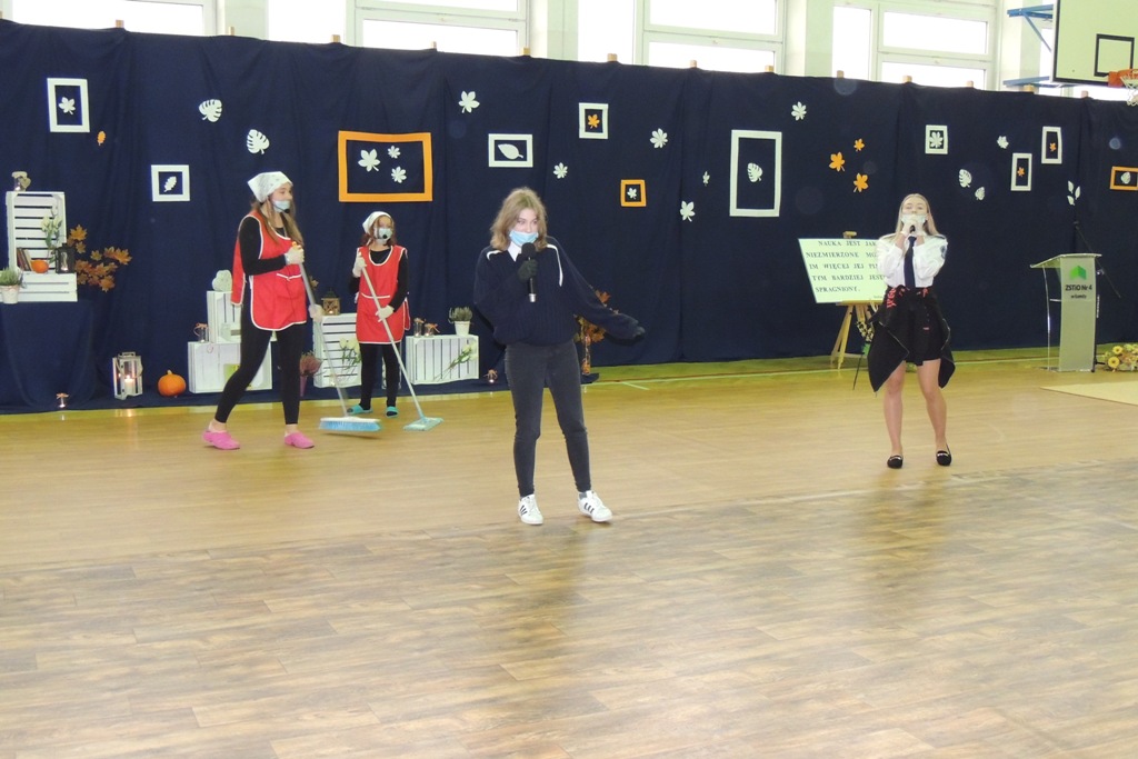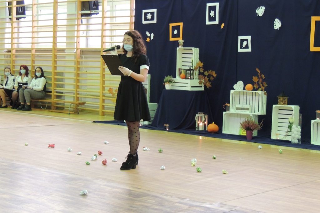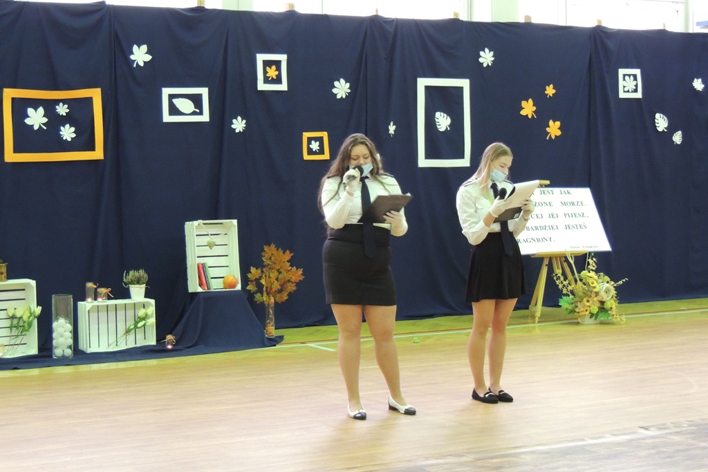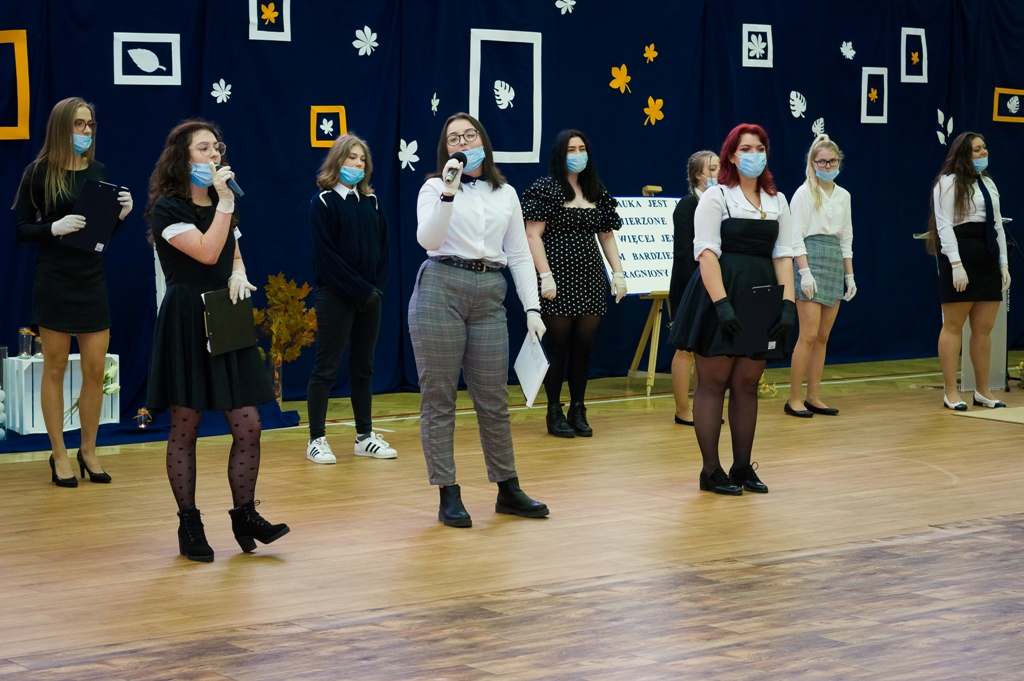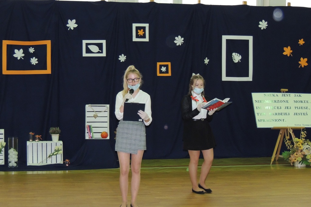 Samorząd Uczniowski pod kierunkiem pani Anny Ulińskiej zaprezentował program artystyczny dedykowany nauczycielom i pracownikom szkoły. Pełne humoru scenki z życia szkoły przeplatały się z wierszami i piosenkami. Młodzież dziękowała za trud włożony w pracę pedagogiczną, za okazywane serce i wspaniałe przewodnictwo na trudnej drodze zdobywania wiedzy, a także starania, aby mogła uczyć się w czystej, bezpiecznej i zadbanej szkole.