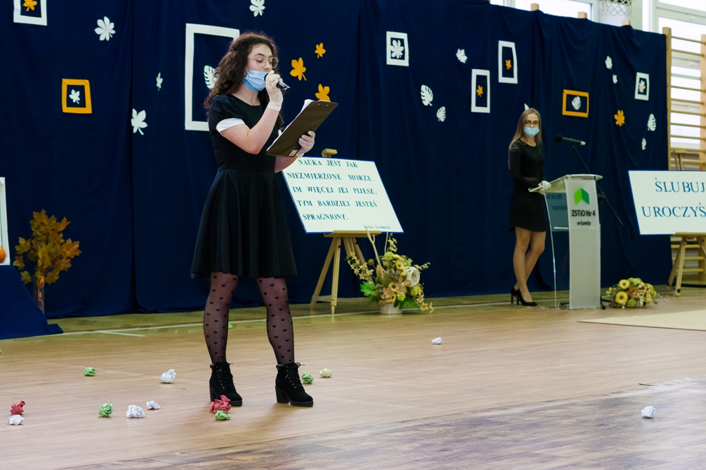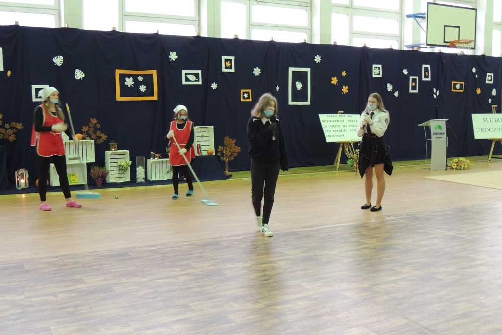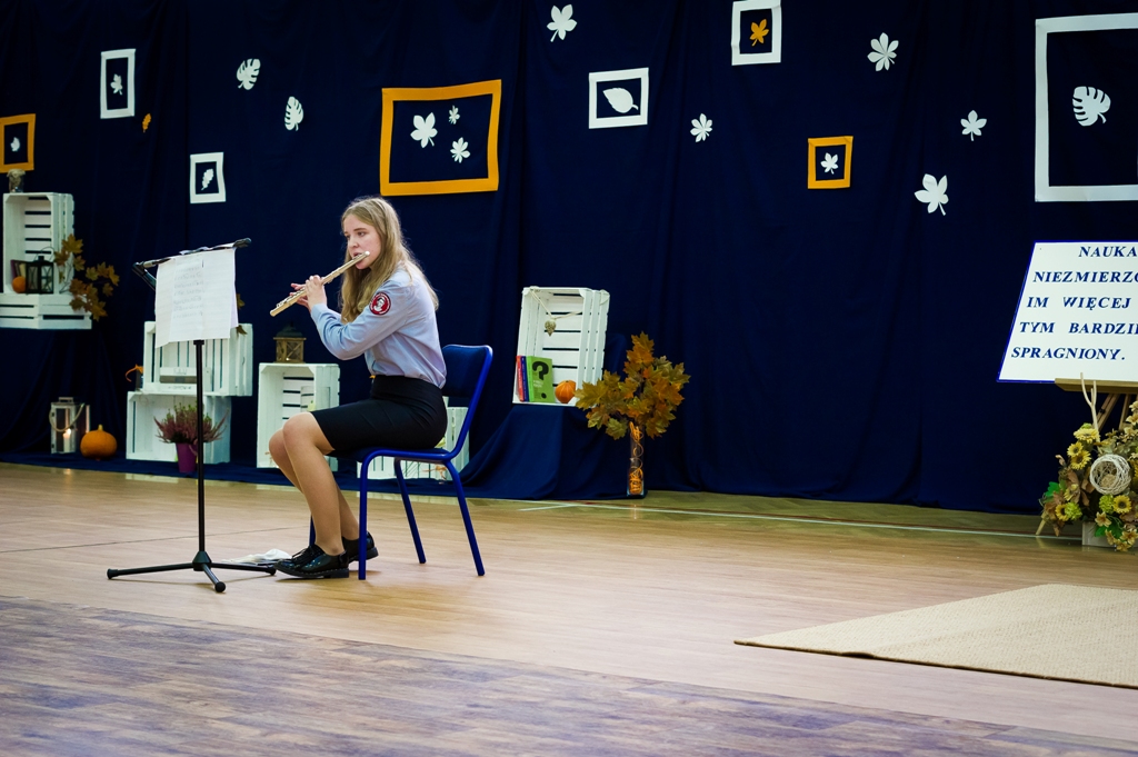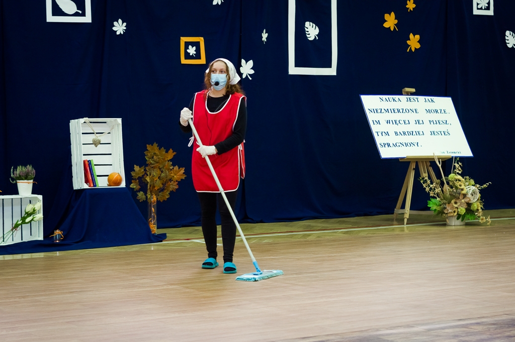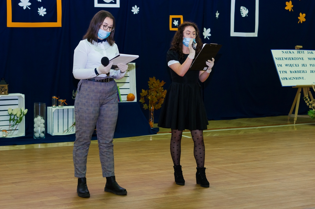 Samorząd Uczniowski pod kierunkiem pani Anny Ulińskiej zaprezentował program artystyczny dedykowany nauczycielom i pracownikom szkoły. Pełne humoru scenki z życia szkoły przeplatały się z wierszami i piosenkami. Młodzież dziękowała za trud włożony w pracę pedagogiczną, za okazywane serce i wspaniałe przewodnictwo na trudnej drodze zdobywania wiedzy, a także starania, aby mogła uczyć się w czystej, bezpiecznej i zadbanej szkole.