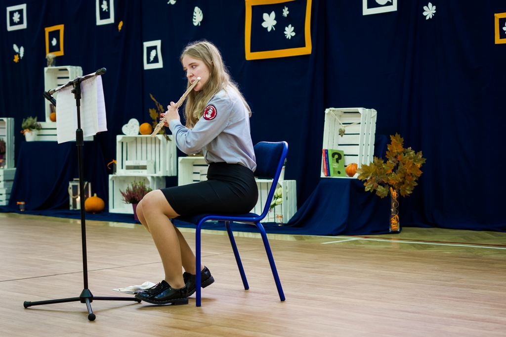 Na zakończenie muzyczny upominek dla dyrekcji i pracowników szkoły przygotowała uczennica klasy pierwszej Technikum Hotelarstwa, Wiktoria Dmochowska, która zaprezentowała utwory muzyczne na flet. Rada Rodziców przygotowała dla zebranych słodki poczęstunek, a oprawą stołu zajęły się p. Edyta Trzaska, p. Ewa Bogulas i p. Dorota Miarka.