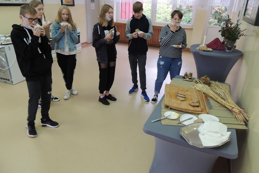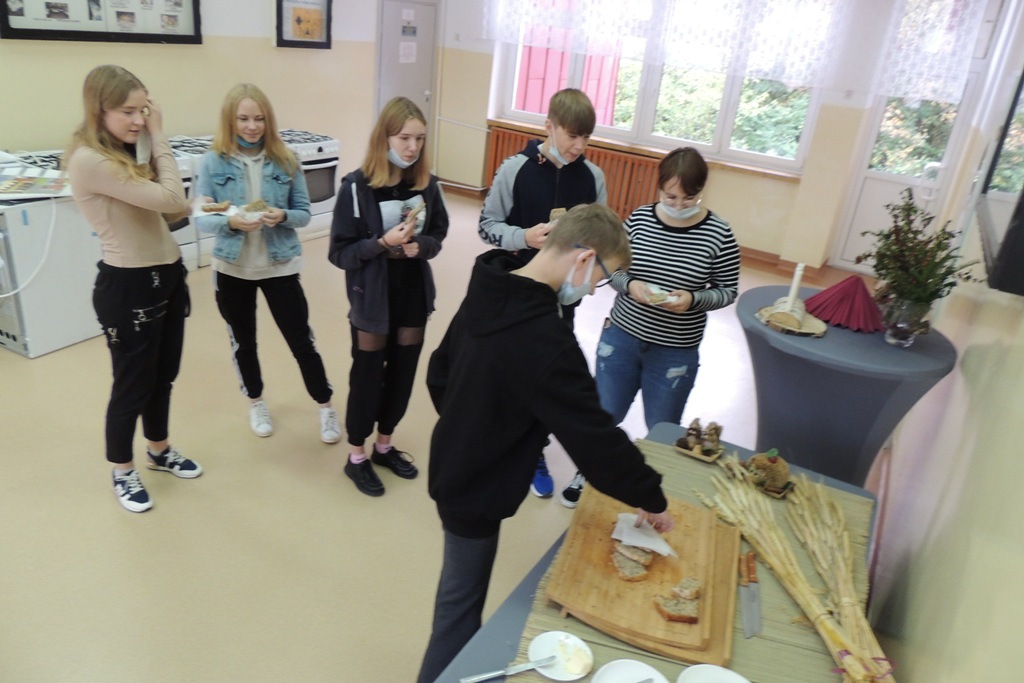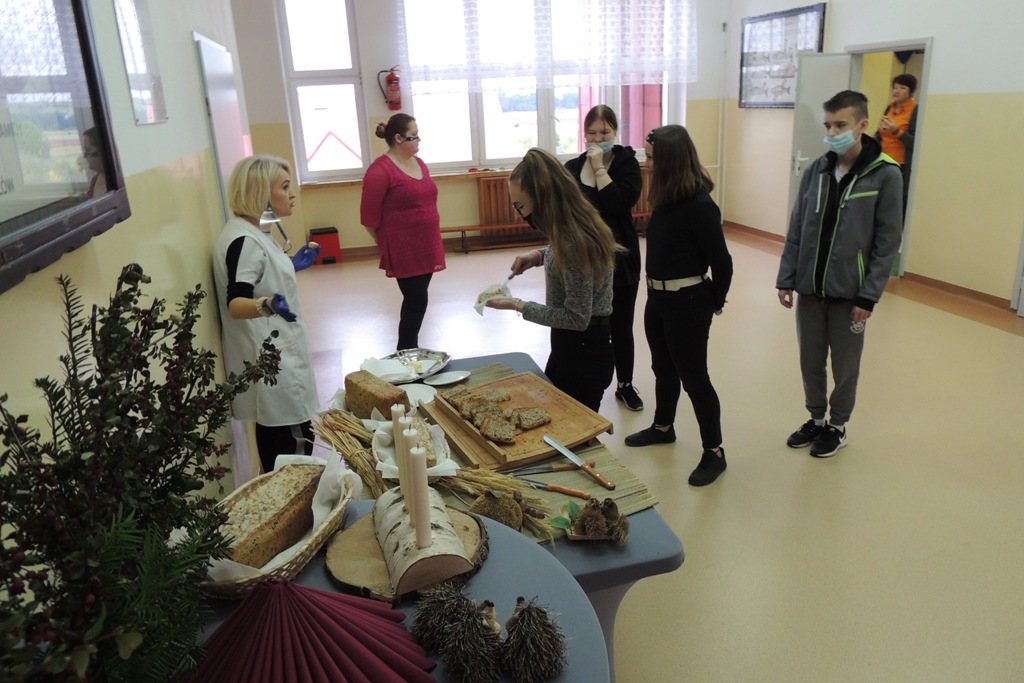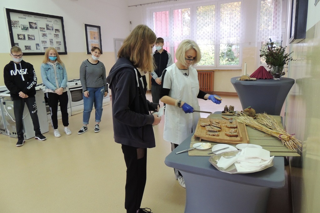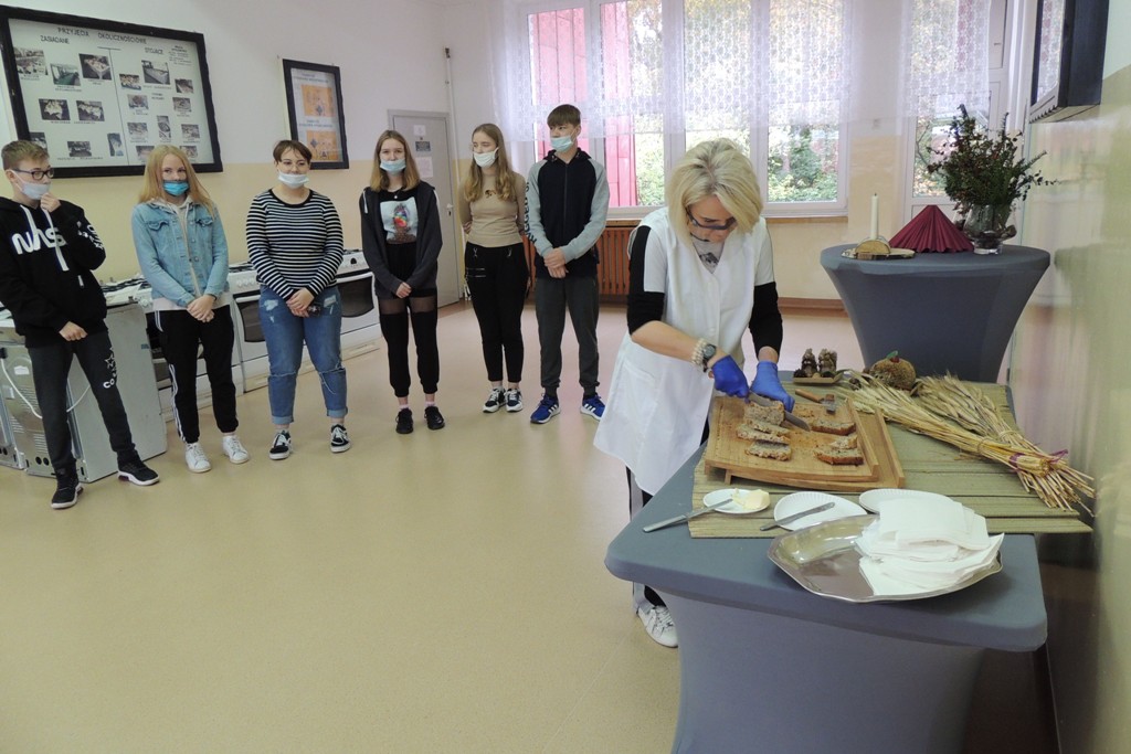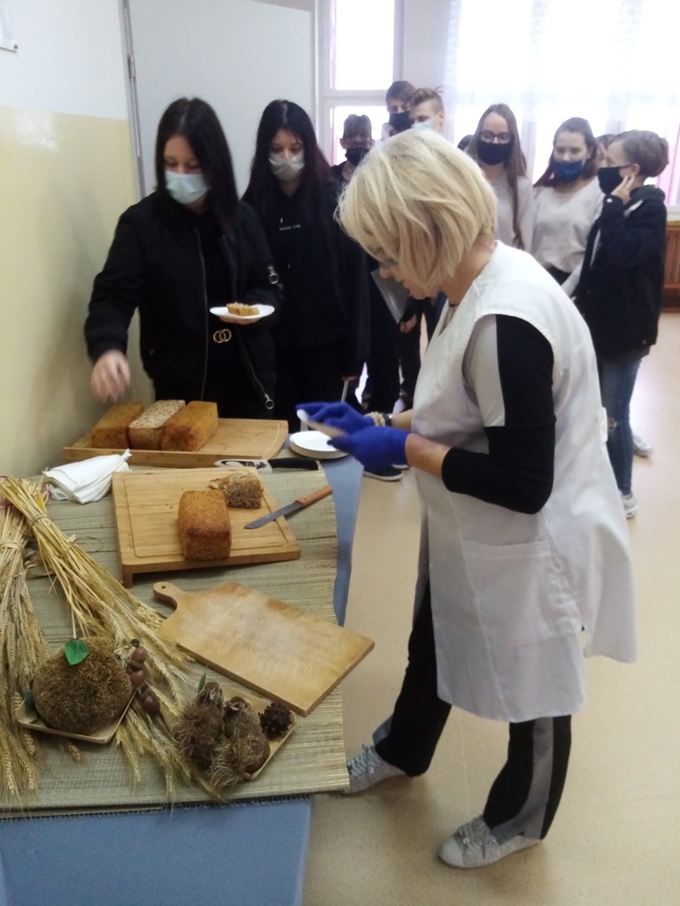16 października 2020 r. obchodzimy Światowy Dzień Chleba, ustanowiony przez Międzynarodowy Związek Piekarzy i Cukierników. Z tej okazji Panie: Edyta Trzaska i Ewa Bogulas z klasą 2 TŻp zorganizowały warsztaty pt. „Tydzień dobrego chleba i zdrowego stylu życia - szkoła 2020”. Uczniowie branży gastronomicznej poznali proces wyrabiania chleba począwszy od przesiewania mąki, wykonania zaczynu, wygniatania i wyrastania ciasta, dekoracji aż po jego wyjęcie z pieca. Warsztaty pieczenia chleba połączono z jego degustacją, na którą zaproszono społeczność szkolną.
