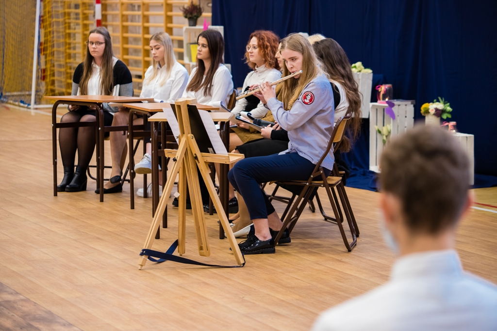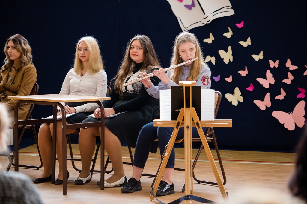 Uroczyste spotkanie na sali gimnastycznej z okazji Dnia Edukacji Narodowej otworzyła wicedyrektor p. Maria Gawryś, podkreślając znaczenie wychowania i nauki. Uczniowie z Samorządu Uczniowskiego pod kierunkiem p. Anny Ulińskiej przygotowali okolicznościowe dekoracje i zaprezentowali program artystyczny dedykowany nauczycielom i pracownikom szkoły. Młodzież dziękowała za trud włożony w pracę pedagogiczną, za okazywane serce i wspaniałe przewodnictwo na trudnej drodze zdobywania wiedzy, a także starania, aby mogła uczyć się w czystej, bezpiecznej i zadbanej szkole.