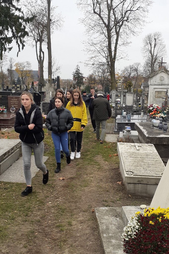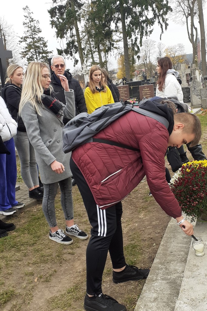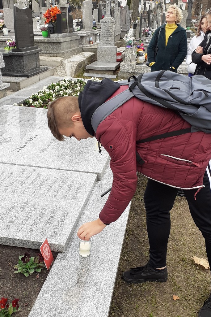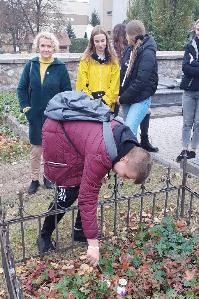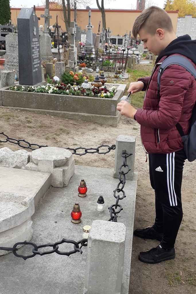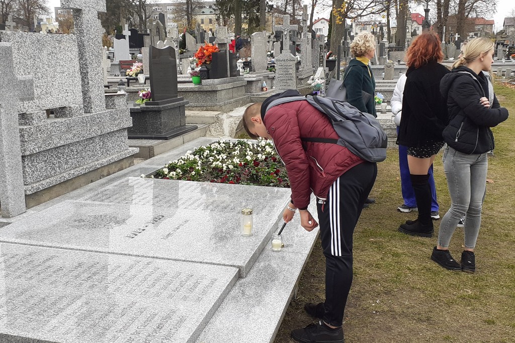 W związku z akcją MEiN #Szkoła Pamięta - uczniowie naszej szkoły z klasy 3 APg (pod opieką p. Beaty Kamińskiej-Szmitko oraz p. Wiesława Czupryńskiego) odwiedzili cmentarz komunalny na ul.Kopernika. Zapaliliśmy znicze na grobach bohaterów walki o wolność z Powstania Listopadowego, wybranych grobach znanych Łomżynian m.in. ks Kacpra Mikulskiego przyjaciela Józefa Piłsudskiego, żołnierzy z wojny polsko-bolszewickiej roku 1920 oraz na wybranych grobach Żołnierzy Niezłomnych z okresu tzw. Polski Ludowej. W szkole była też wystawa związana z akcją #Szkoła Pamięta.