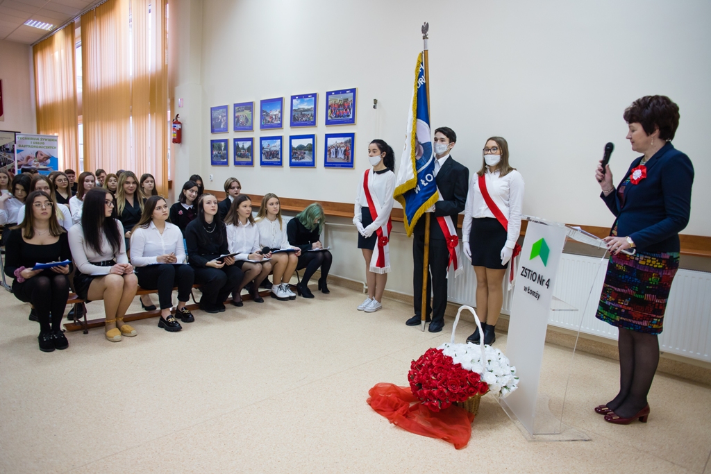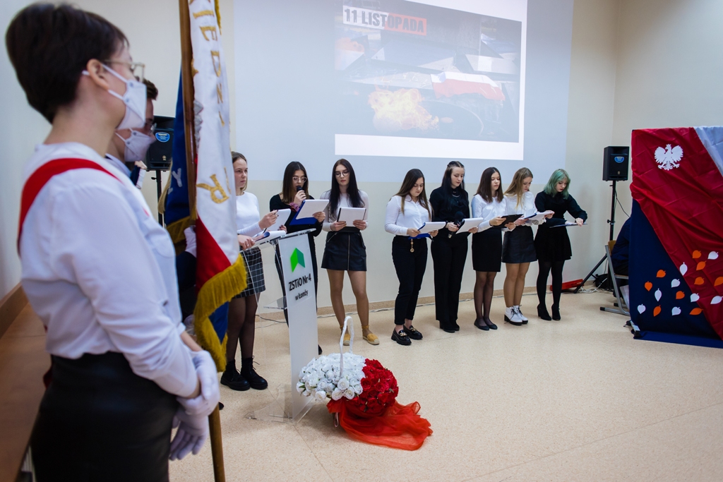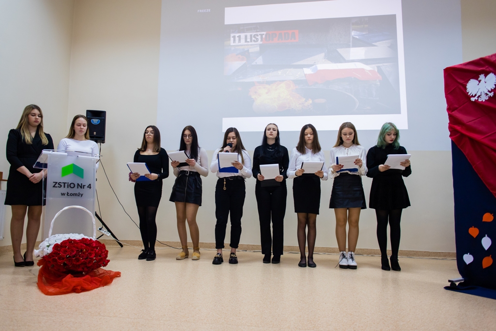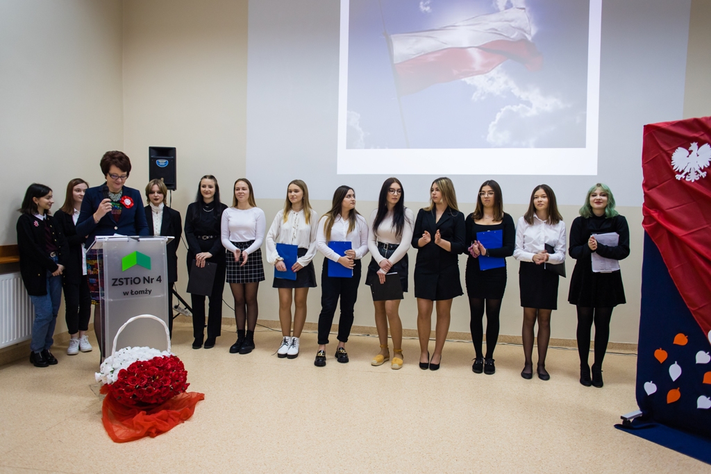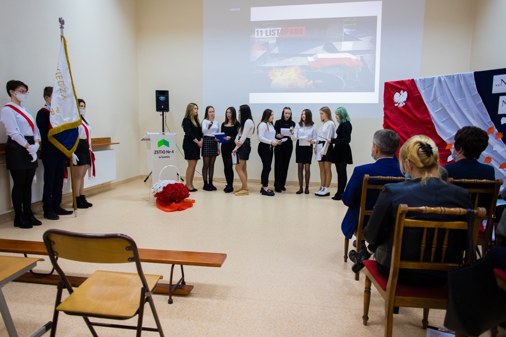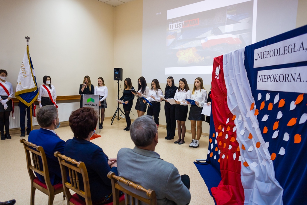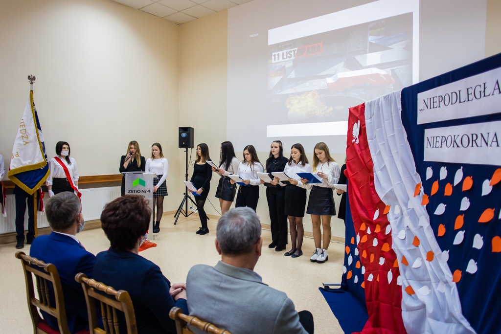 Dnia 10 listopada 2021 roku w ZSTiO Nr 4 w Łomży odbyła się uroczysta akademia z okazji 103. rocznicy odzyskania przez Polskę niepodległości. Motto inscenizacji „Niepodległa, Niepokorna” eksponowało wyjątkowość Polaków jako narodu kochającego wolność i buntującego się przeciw wszelkim formom zniewolenia.