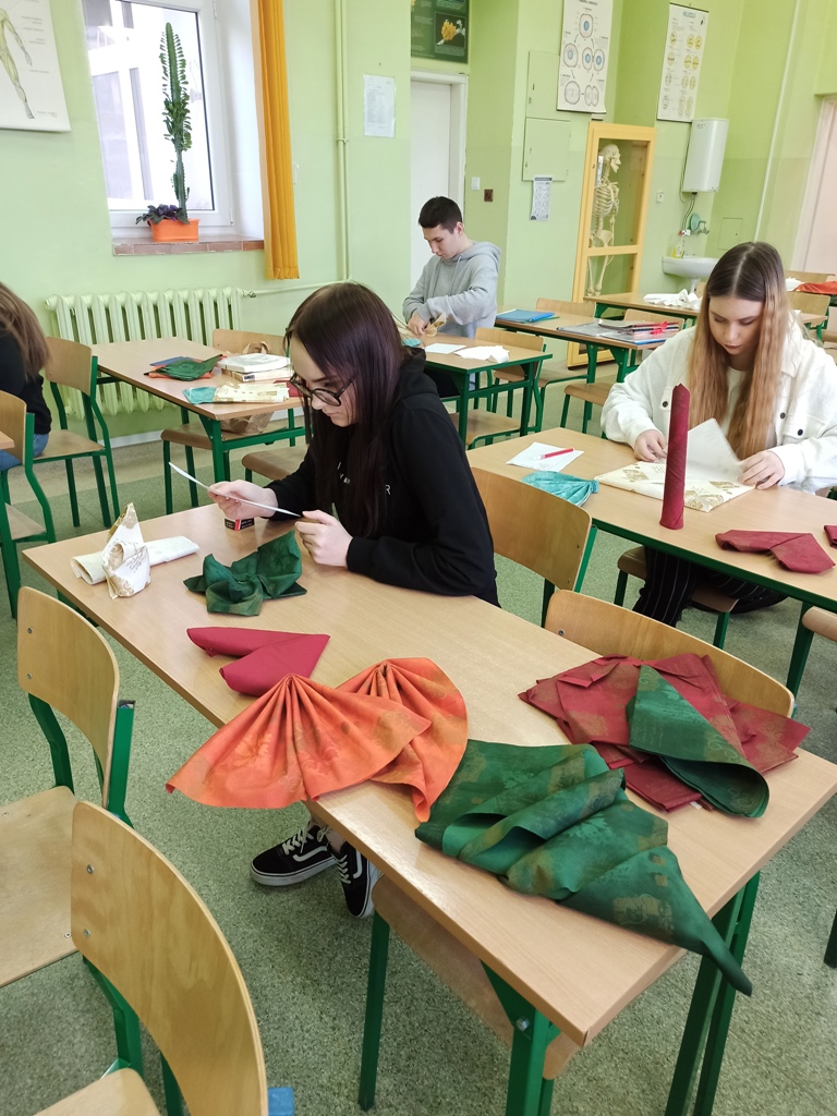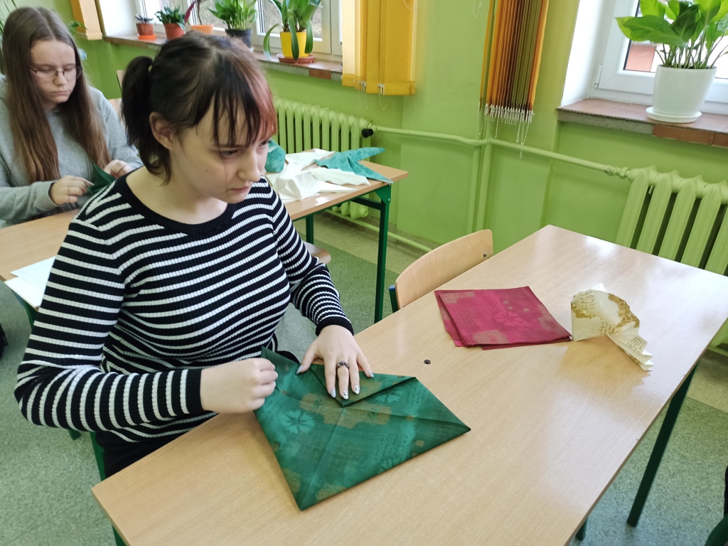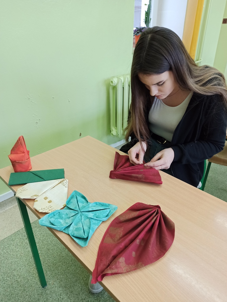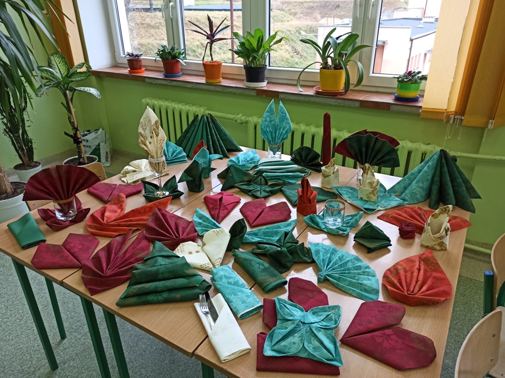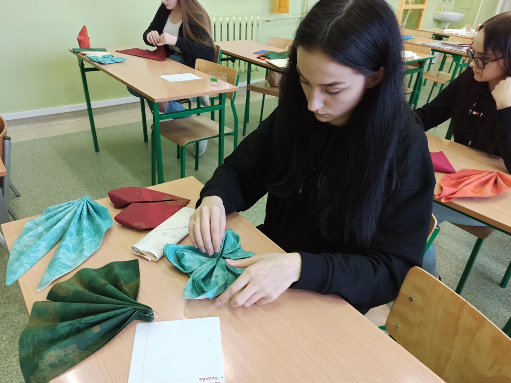 W naszej szkole od kilku lat prowadzone są warsztaty dekoracyjnego składania serwetek. Jest to wyjątkowa umiejętność, która podnosi wartość uczniów jako przyszłych pracowników, a ponadto jest sposobem wykonania niebanalnych dekoracji rodzinnego stołu.