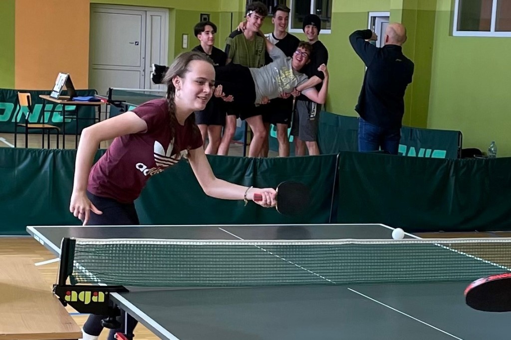 Dziewczęta naszej szkoły w składzie: Diana Dąbrowska 1BP, Nikola Rokuszewska 2AP i Laura Szmiarowska 2AP zajęły 3 miejsce w Mistrzostwach Miasta Łomży w tenisie stołowym.