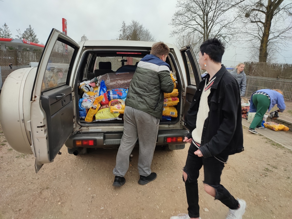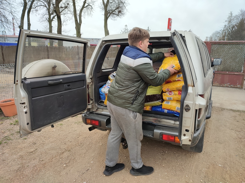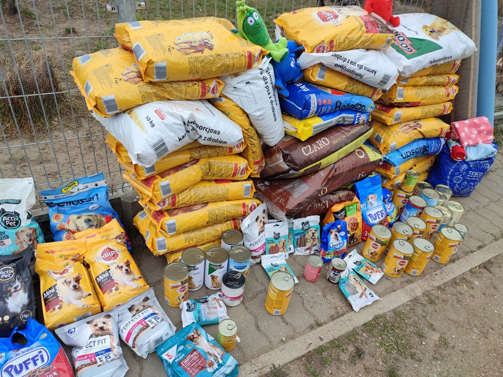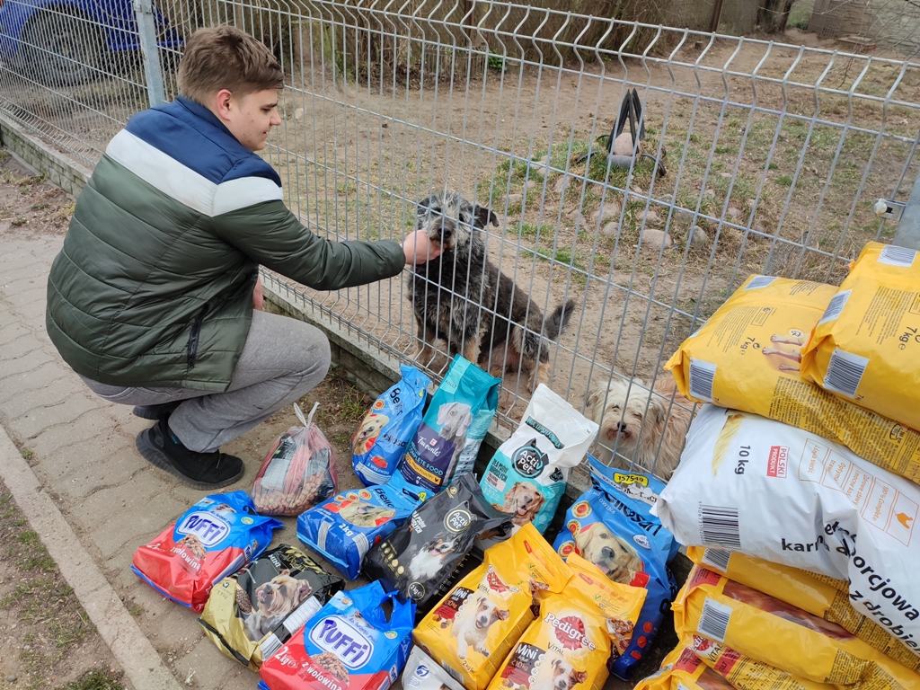 W ubiegłym tygodniu przekazaliśmy do łomżyńskiego Schroniska dla Bezdomnych Psów „Arka” kilkadziesiąt kilogramów karmy dla zwierząt, koce oraz zabawki, które zgromadziliśmy w ramach szkolnej zbiórki trwającej przez ostatni miesiąc. Zbiórkę koordynował Samorząd Uczniowski, a włączyła się w nią cała społeczność szkoły.