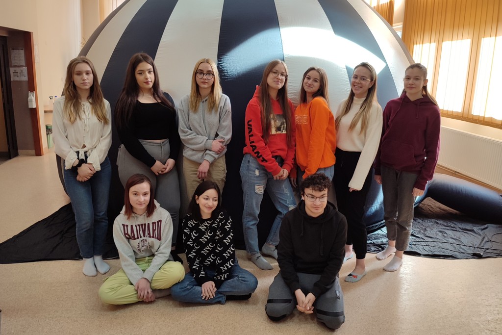 Lekcje fizyki w naszej szkole przybrały niecodzienną formę, kiedy to podczas seansów w kinie sferycznym uczniowie odbyli niezwykle inspirującą, wirtualną podróżą w czasie i przestrzeni. W specjalnej kopule kina sferycznego, gdzie obraz wyświetlany jest w taki sposób, aby zapewnić efekt podobny do projekcji w planetarium, 7 kwietnia 2022r. uczniowie klas 1BP/PP, 1AH, 2AP/PP, 2AH, 3AP/PP, 3BP, 3PPg oraz 4aTB obejrzeli filmy „Narodziny Życia na Ziemi”, „Powrót na Księżyc” oraz „Tajemnice grawitacji – śladami Alberta Einsteina”. Poza ogromną dawką wiedzy, pokazy kina sferycznego zapewniły też niezapomniane wrażenia dzięki nowoczesnej technologii wyświetlania obrazu. Treści opowiedziane za pomocą wyjątkowych efektów specjalnych, muzyki i niewiarygodnej grafiki komputerowej na pewno zapadną w pamięć i pobudzą wyobraźnię młodych pasjonatów odkrywania wszechświata.