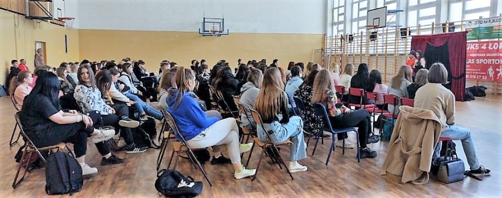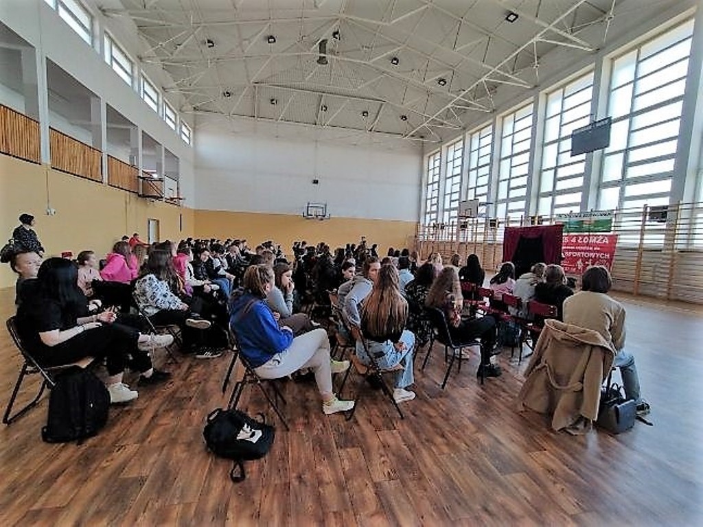 W dniu 11.04.2022 r. w sali gimnastycznej odbył się spektakl profilaktyczny pt. „Cisza” w wykonaniu Teatru „Kurtyna”. Prezentowane przez ten teatr widowiska artystyczne w ciekawy sposób prezentują zagrożenia na jakie narażony jest współczesny młody człowiek oraz pozytywne wzorce zachowania. Spektakl „Cisza” poruszył temat uzależnień oraz depresji pokazując jak sobie z nimi radzić, gdzie szukać pomocy oraz zachęcał do uwrażliwienia na drugiego człowieka.