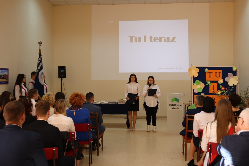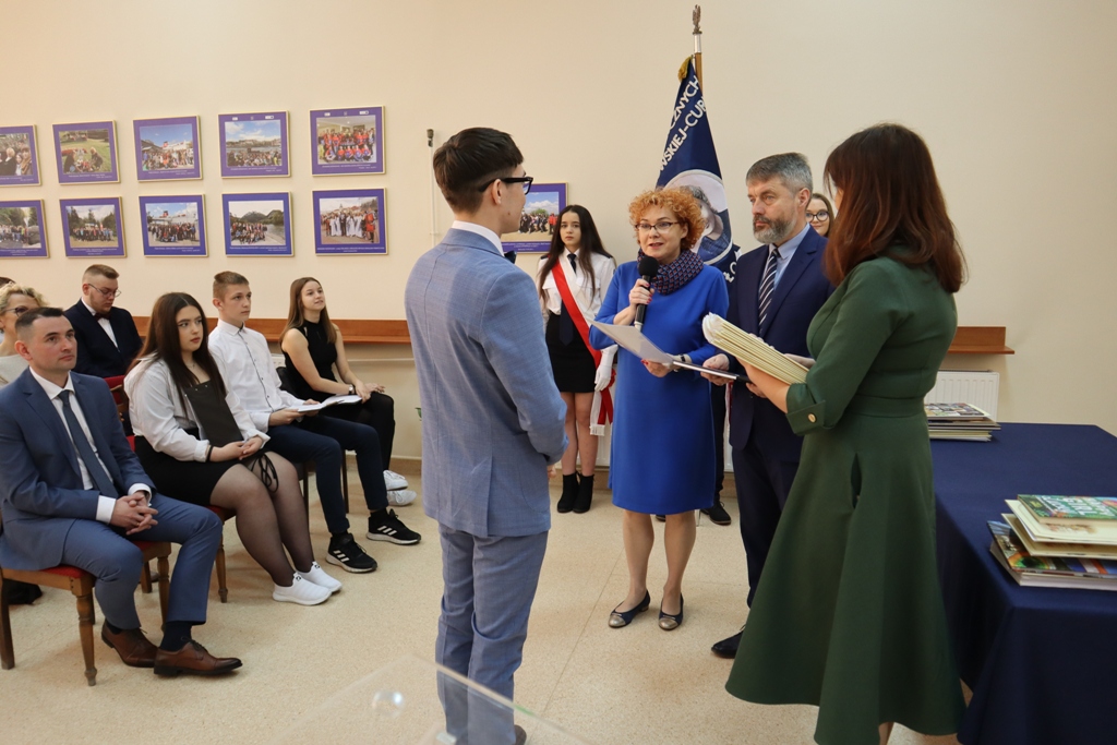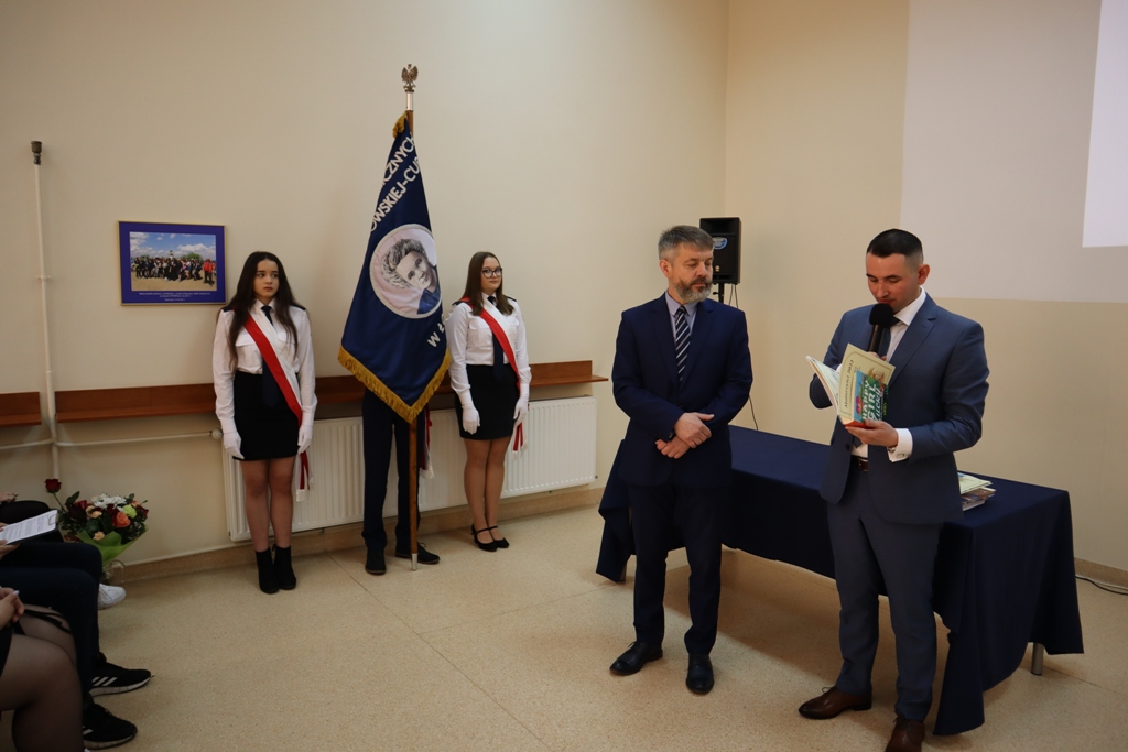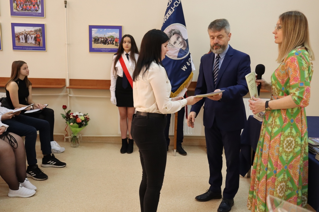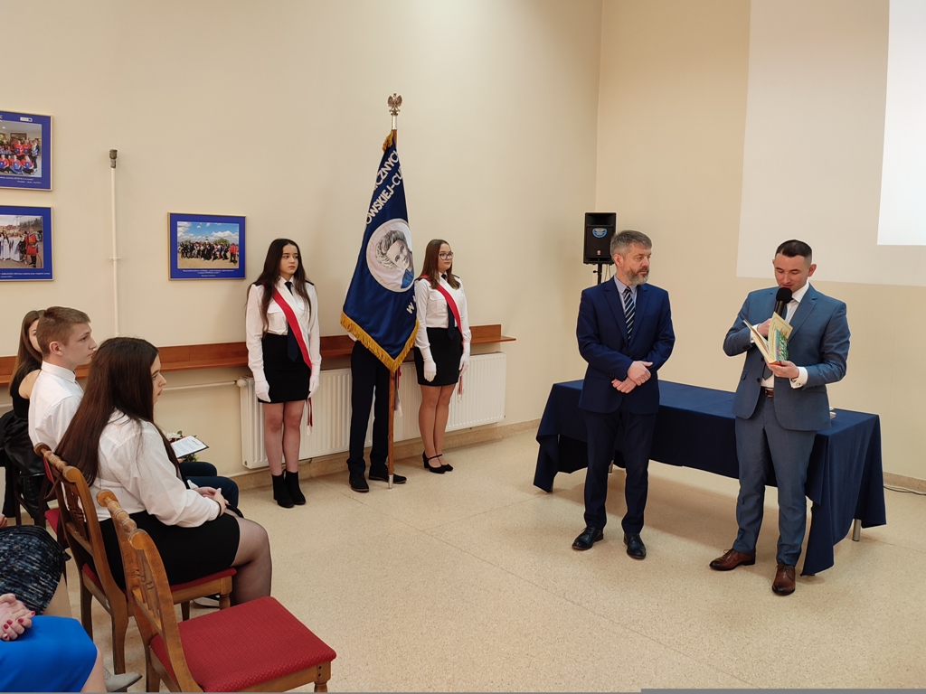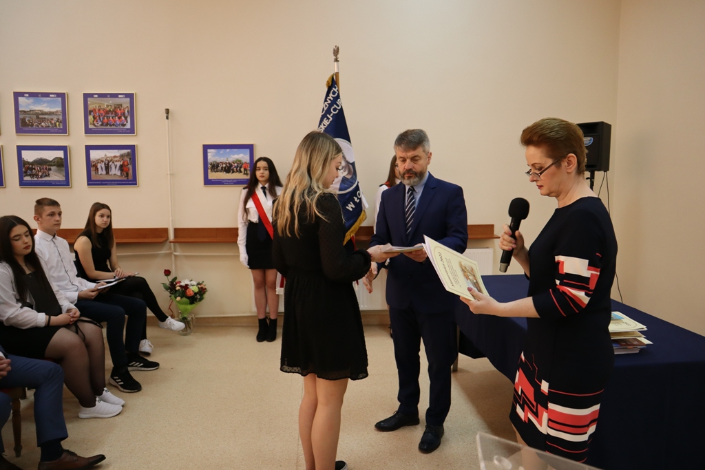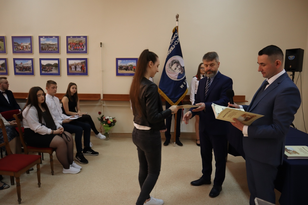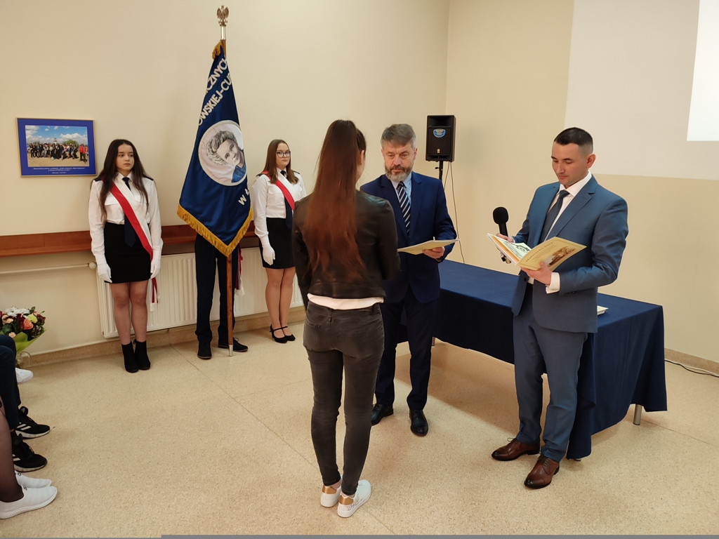 Uroczystość zakończenia roku szkolnego dla klas maturalnych odbyła się w piątek 29 kwietnia. Uroczystość poprowadziła pani wicedyrektor Maria Gawryś. Dyrektor szkoły Artur Ciborowski wraz z wychowawcami klas p. Sylwią Kołakowską, p. Alicją Wirtel, p. Małgorzatą Demczuk-Gutowską oraz p. Kamilem Galankiem wręczył świadectwa i wyróżnienia tegorocznym absolwentom. W imieniu Samorządu Uczniowskiego uczennice Marta Gronostajska oraz Alicja Jabłecka złożyły maturzystom życzenia pomyślności oraz odwagi w realizacji planów i marzeń. Przedstawicielki klas maturalnych Ewelina Stankiewicz oraz Zuzanna Nicewicz podziękowały gronu pedagogicznemu za trud włożony w przekazywanie wiedzy. Wzruszającą część artystyczną przygotowała klasa 2 AP pod opieką pani Beaty Kamińskiej-Szmitko.