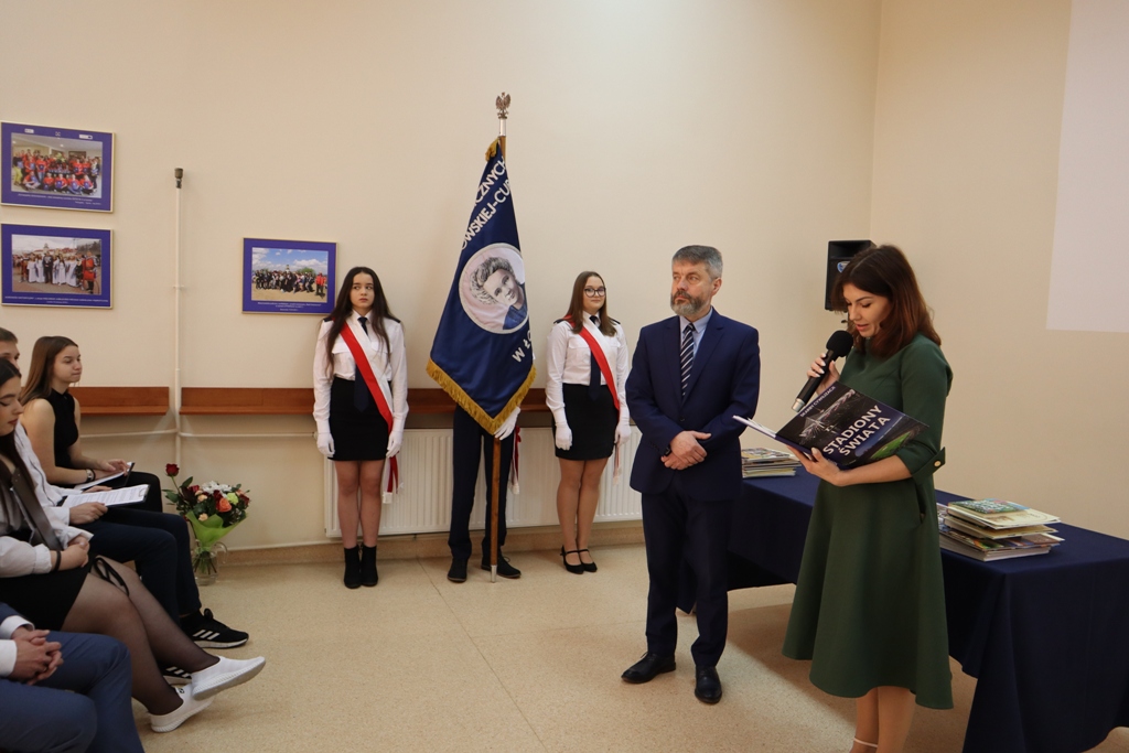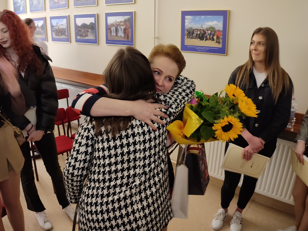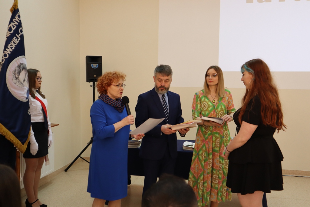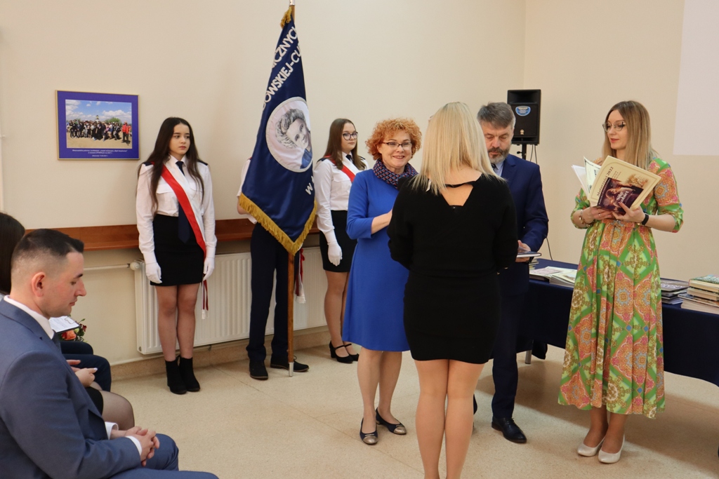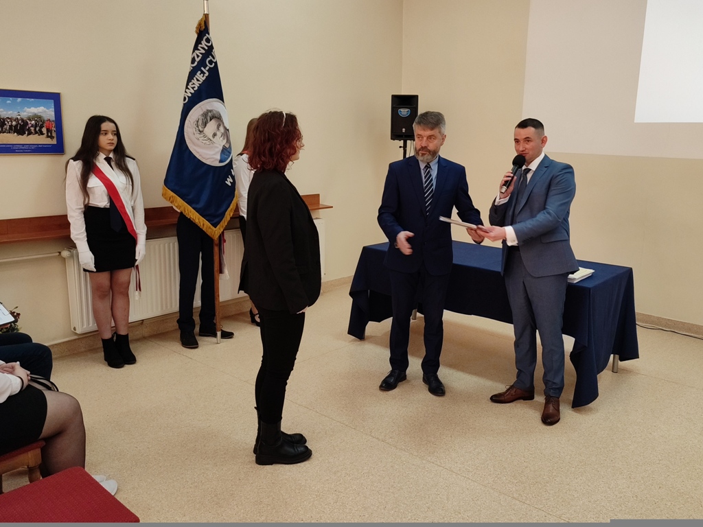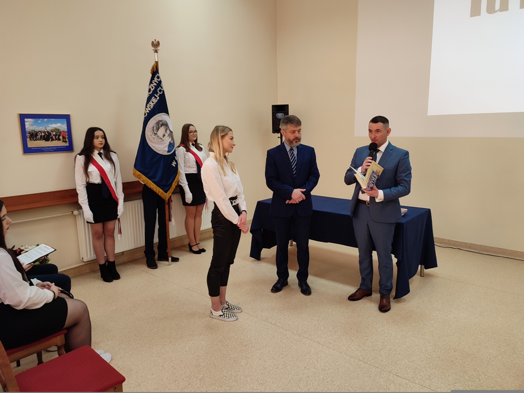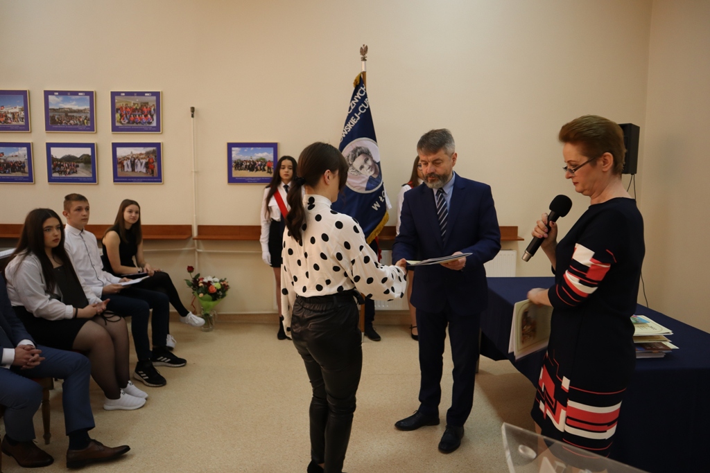 Uroczystość zakończenia roku szkolnego dla klas maturalnych odbyła się w piątek 29 kwietnia. Uroczystość poprowadziła pani wicedyrektor Maria Gawryś. Dyrektor szkoły Artur Ciborowski wraz z wychowawcami klas p. Sylwią Kołakowską, p. Alicją Wirtel, p. Małgorzatą Demczuk-Gutowską oraz p. Kamilem Galankiem wręczył świadectwa i wyróżnienia tegorocznym absolwentom. W imieniu Samorządu Uczniowskiego uczennice Marta Gronostajska oraz Alicja Jabłecka złożyły maturzystom życzenia pomyślności oraz odwagi w realizacji planów i marzeń. Przedstawicielki klas maturalnych Ewelina Stankiewicz oraz Zuzanna Nicewicz podziękowały gronu pedagogicznemu za trud włożony w przekazywanie wiedzy. Wzruszającą część artystyczną przygotowała klasa 2 AP pod opieką pani Beaty Kamińskiej-Szmitko.