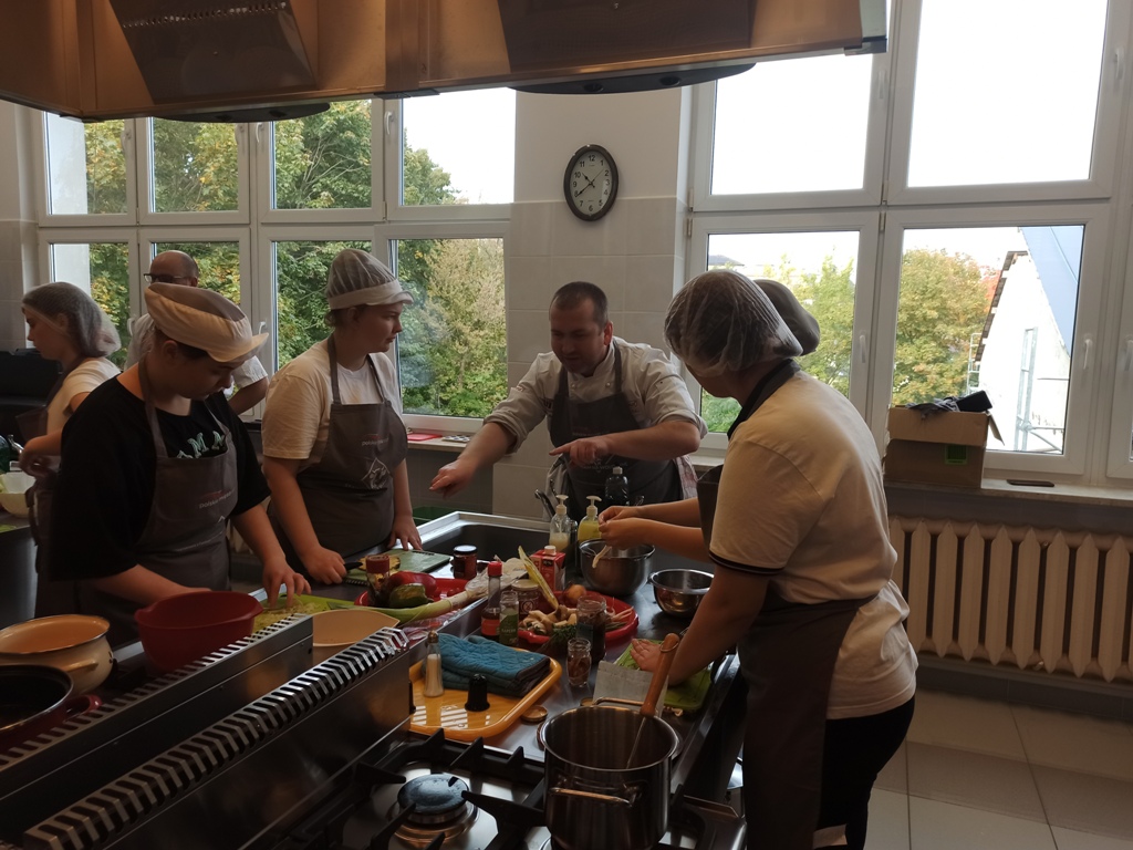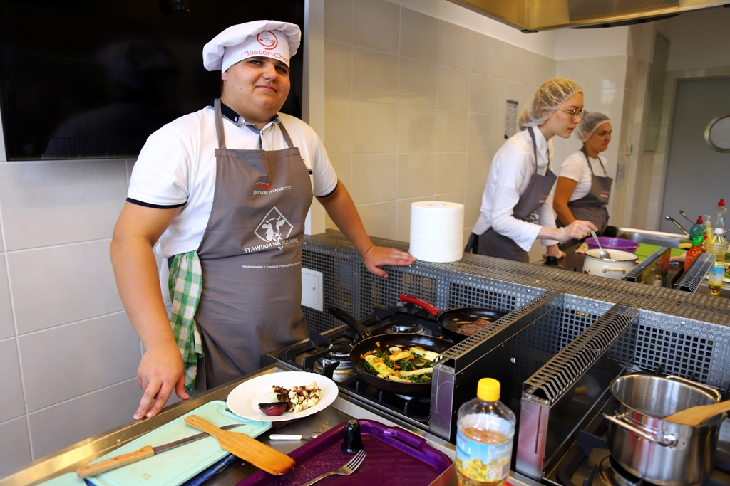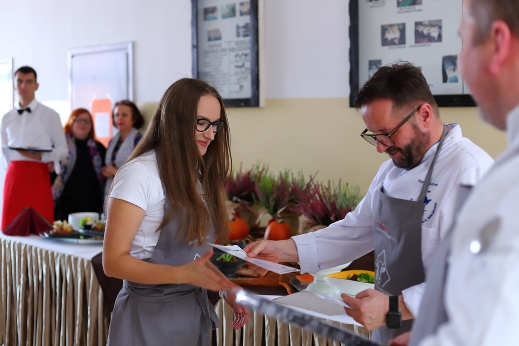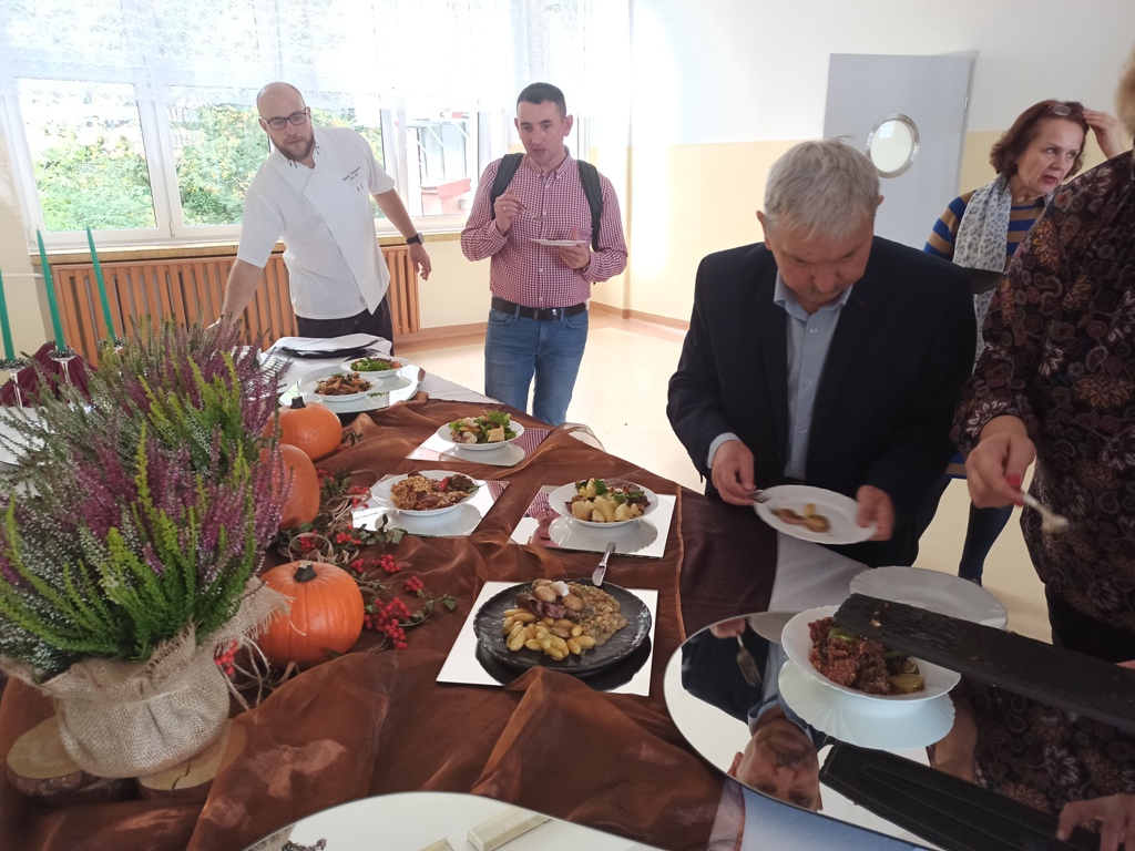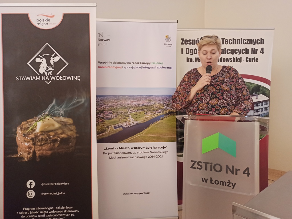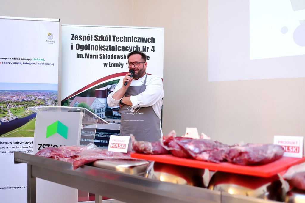 Wykład i warsztaty kulinarne prowadzone przez znakomitego eksperta kulinarnego wspaniale wpisały się w realizację promocji kształcenia zawodowego w ramach projektu „ŁOMŻA – MIASTO, W KTÓRYM ŻYJĘ I PRACUJĘ”, finansowanego ze środków Norweskiego Mechanizmu Finansowego. Szkoła w ramach podjętych działań promocji kształcenia zawodowego zaprosiła uczniów klas ósmych do uczestnictwa w części wykładowej: