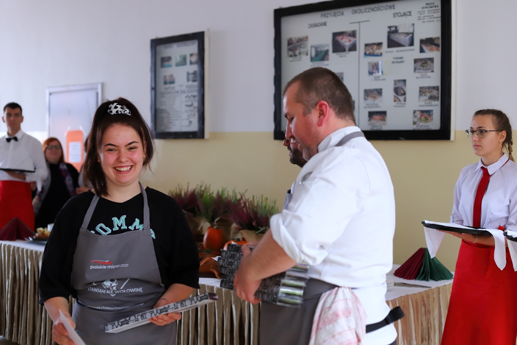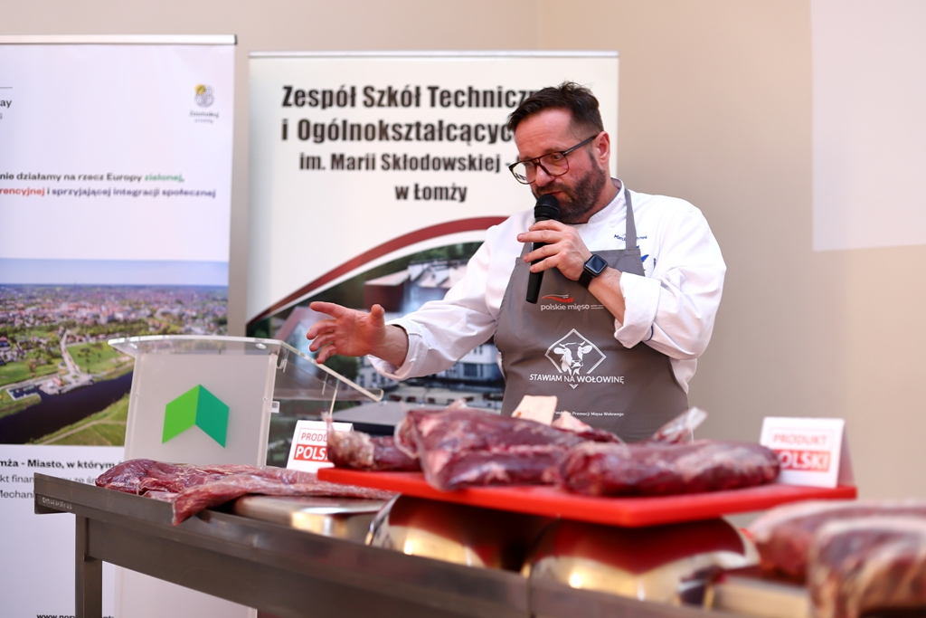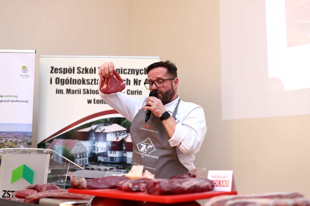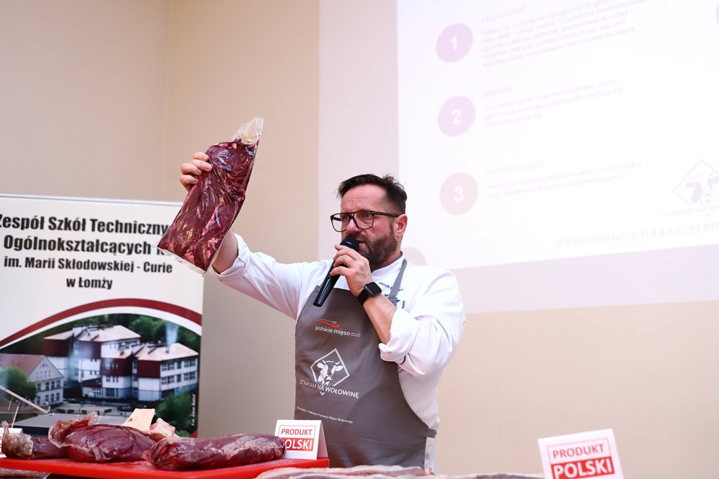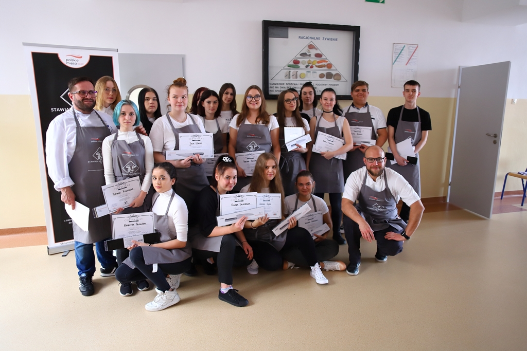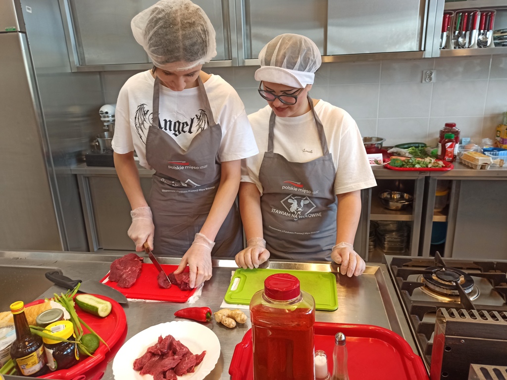 W dniu 30.09.2022 r. po raz kolejny odbyły się w naszej szkole, warsztaty kulinarne z obróbki mięsa wołowego, prowadzone przez znakomitego kreatora smaku, kucharza Pana Marcina Budynka. Tym razem przebiegały one pod hasłem „Stawiam na wołowinę”. Pomysłodawcą programu informacyjno - szkoleniowego z zakresu jakości mięsa wołowego, wśród uczniów szkół gastronomicznych jest Związek Polskie Mięso. Program merytorycznie wspierany jest przez Akademię Kulinarną Marcina Budynka. Głównym celem projektu jest objęcie profesjonalnym szkoleniem uczniów wybranych szkół gastronomicznych oraz przeprowadzenie instruktarzy z zakresu obróbki technologicznej mięsa.